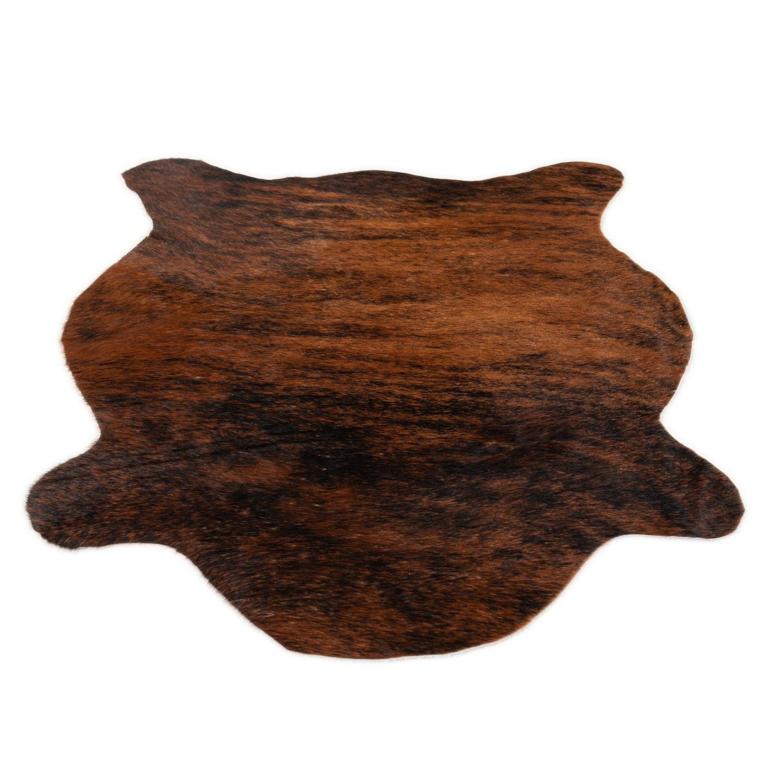 A 2x3 rectangular Rugs.com Cowhide Leather rug in shades of brown and tan, featuring a natural brindle pattern.