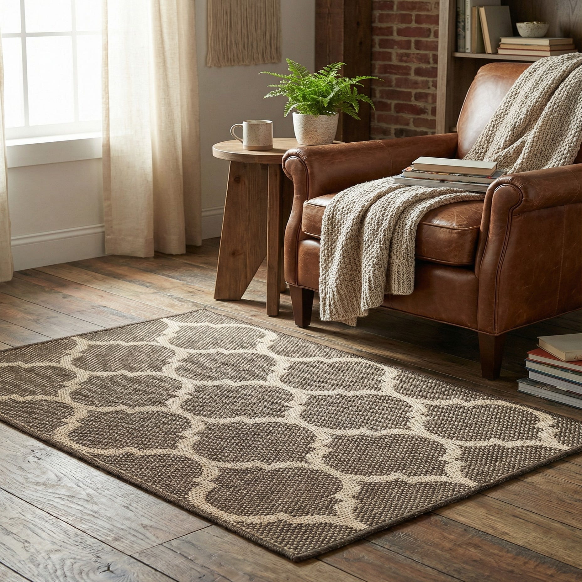 Primary color is Brown. Colors in this rug include: Brown, Natural.
