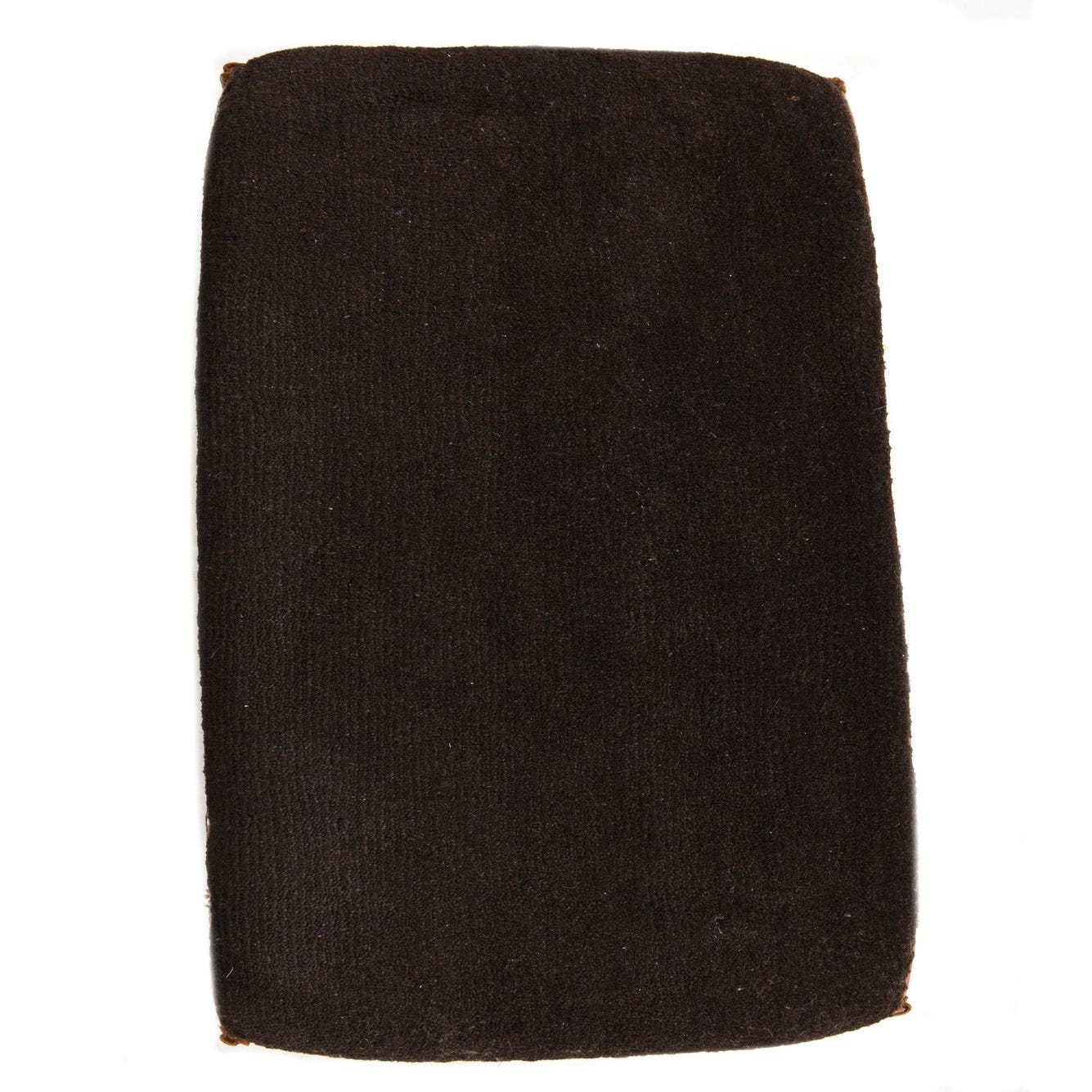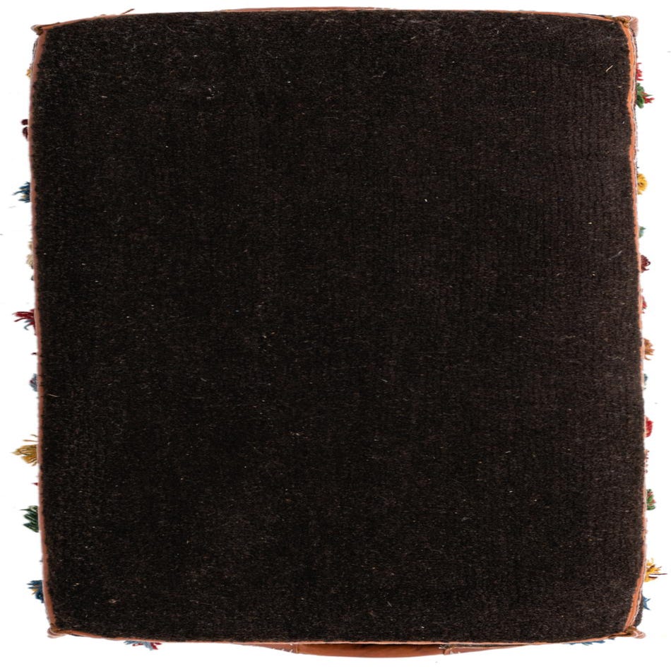A hand-knotted piece with a deep brown ground that anchors the design, this rug has a low, tightly woven pile with a firm, tactile feel underfoot. Along the edges small, multicolored knots and accents in burgundy, red, ivory, beige, light brown, blue, light blue and gold punctuate the brown field, creating restrained but lively color notes without overwhelming the overall tone. The pattern favors simplicity and handcrafted detail—subtle variations in tone and the scattered accent knots give the surface depth and visual texture while keeping the look grounded and versatile.