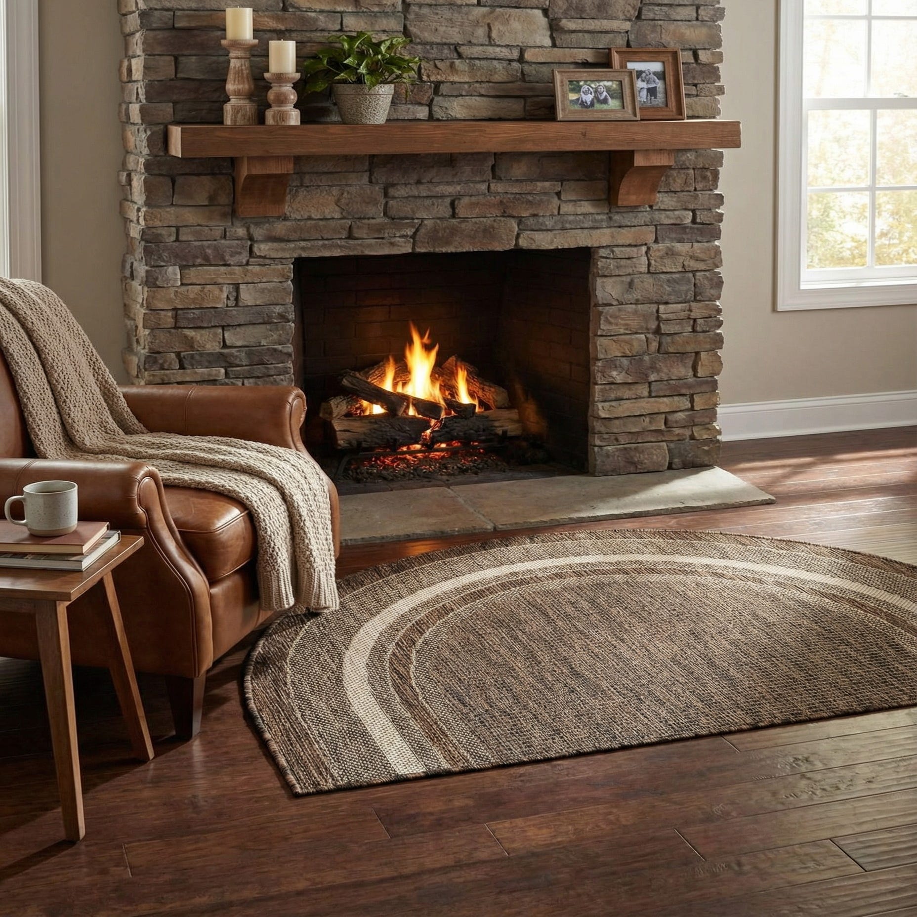 Designed for entryways, in front of a fireplace, or on a covered porch, this piece pairs naturally with warm woods, leather seating, and neutral textiles. It complements transitional and modern farmhouse schemes as well as outdoor living areas with wicker or metal furniture. Use it to anchor a small seating vignette, define a doorway, or soften a hard-surfaced hearth while keeping a grounded, natural palette.