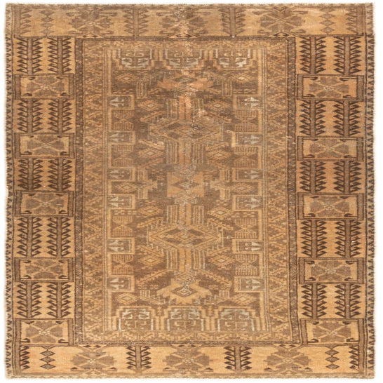 A 3x5 rectangular Hamedan wool rug in shades of brown and tan, featuring a tribal medallion pattern and a detailed border, suitable for an entryway.