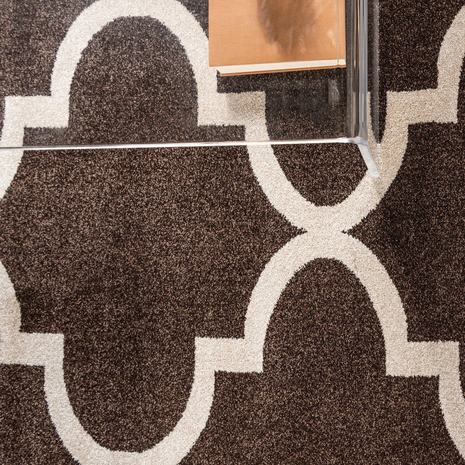 Primary color is Brown. Colors in this rug include: Brown, Beige.
