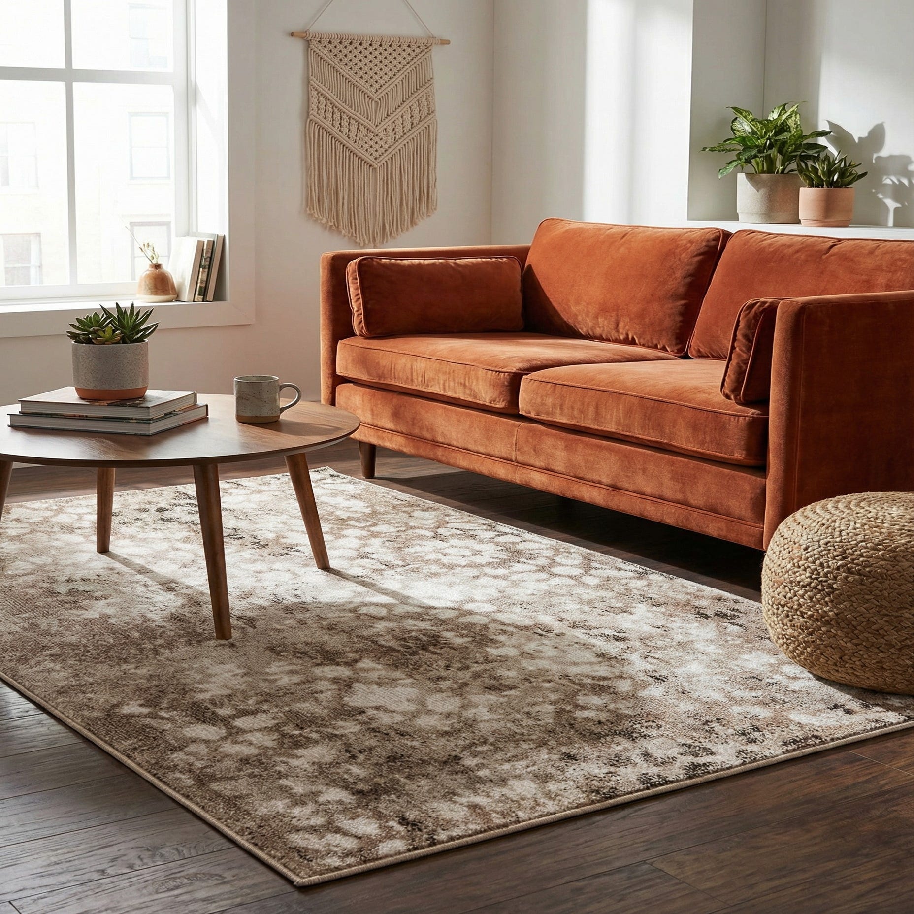 This versatile piece works well in transitional and contemporary settings — place it in a living area to anchor a neutral sofa grouping, layer it under a small dining table, or use it at the foot of a bed to add warmth to a bedroom. Pair it with warm wood furniture, natural textures like rattan or linen, and soft metallic accents for a cohesive look that feels relaxed and intentional.