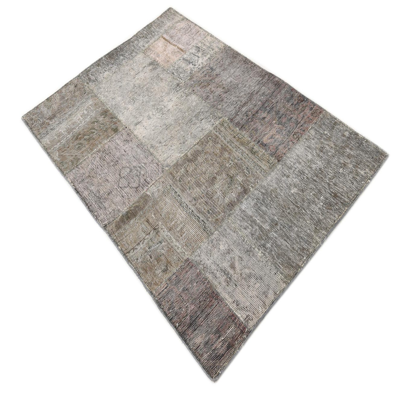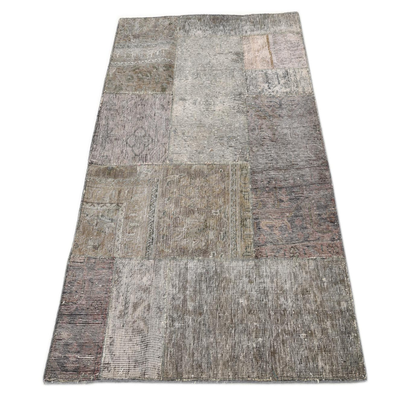 This Ultra Vintage collection rug is a hand-knotted 3x5 piece, crafted from 100% wool, ensuring durability and a soft underfoot experience. The design showcases a patchwork pattern that blends both traditional and contemporary elements, making it a versatile choice for a range of interiors. The color palette is subdued with a base of rich brown complemented by ivory accents, imparting a sense of warmth and sophistication to the space.