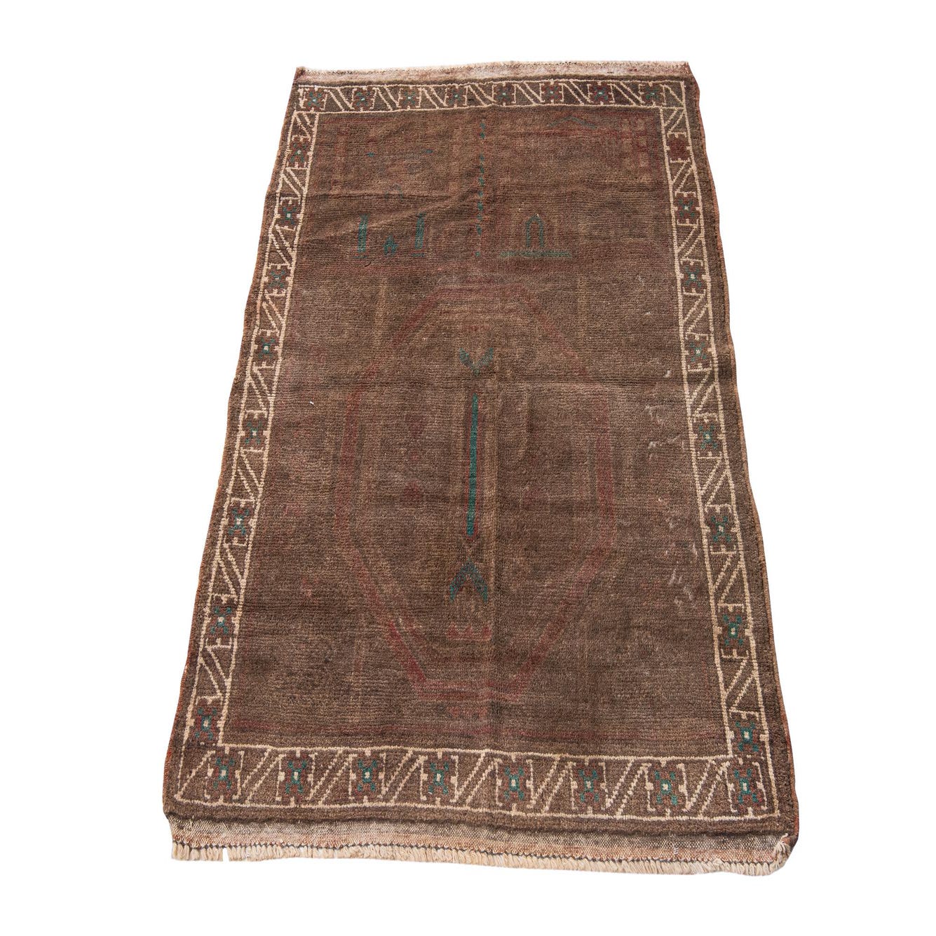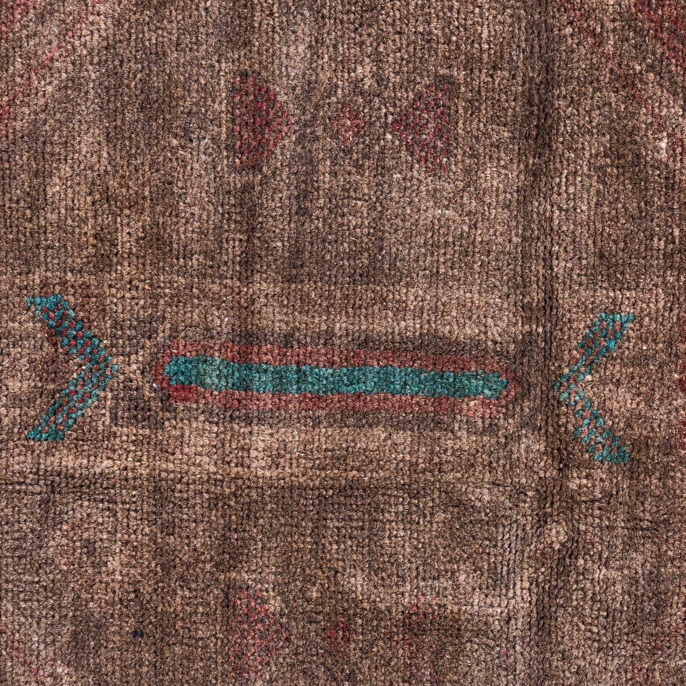 The Ultra Vintage collection presents this hand-knotted, 3x5 rug crafted from 100% wool, ensuring long-lasting quality and a soft, inviting texture. The piece showcases a geometric pattern accentuated by a tasteful blend of brown, ivory, navy blue, and rust red hues, with a dominant brown background that delivers a grounded aesthetic. Traditional motifs are incorporated in a symmetrical arrangement, providing both balance and visual intrigue to the design.