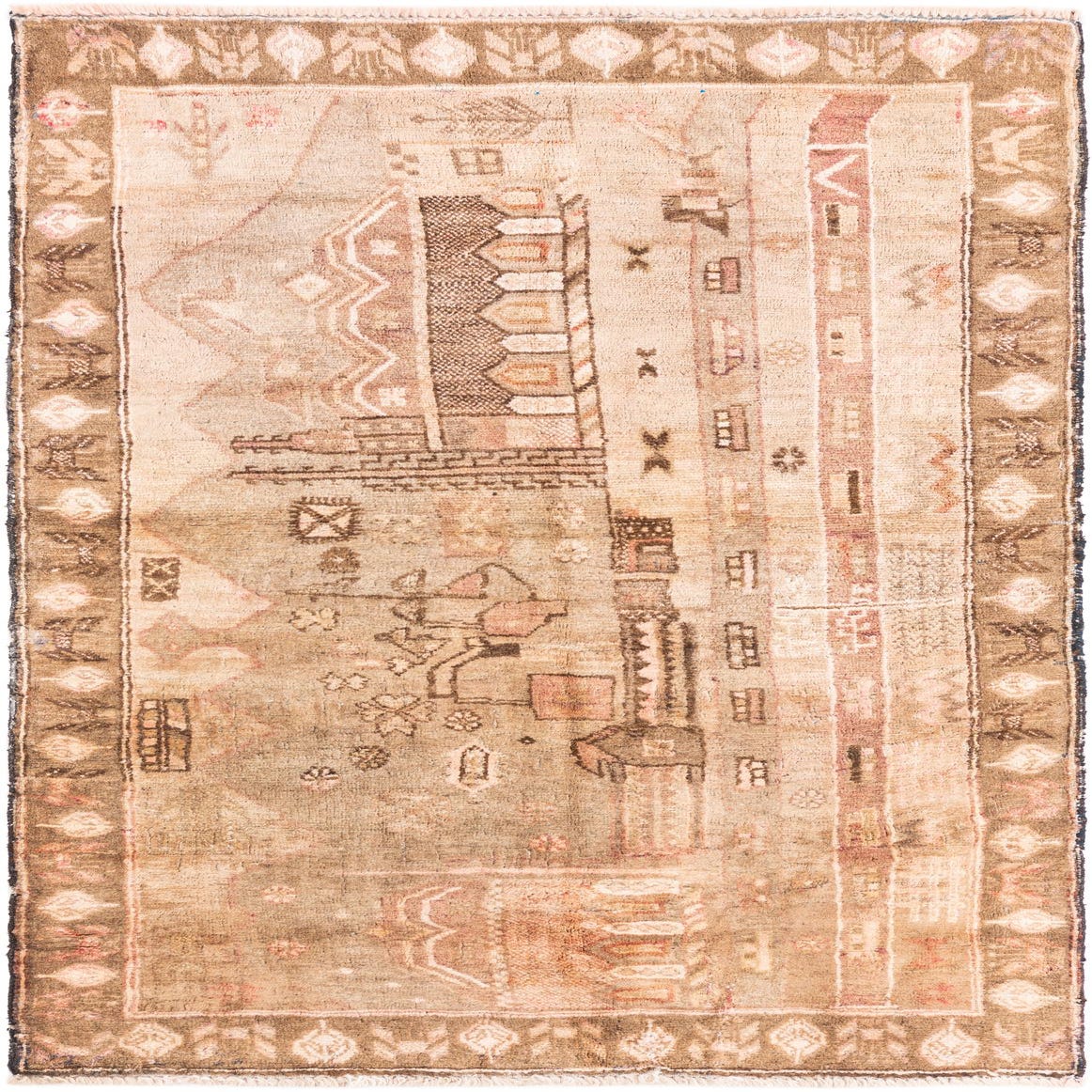 A 3x5 rectangular Ultra Vintage rug featuring a distressed Persian medallion pattern in shades of brown and tan.