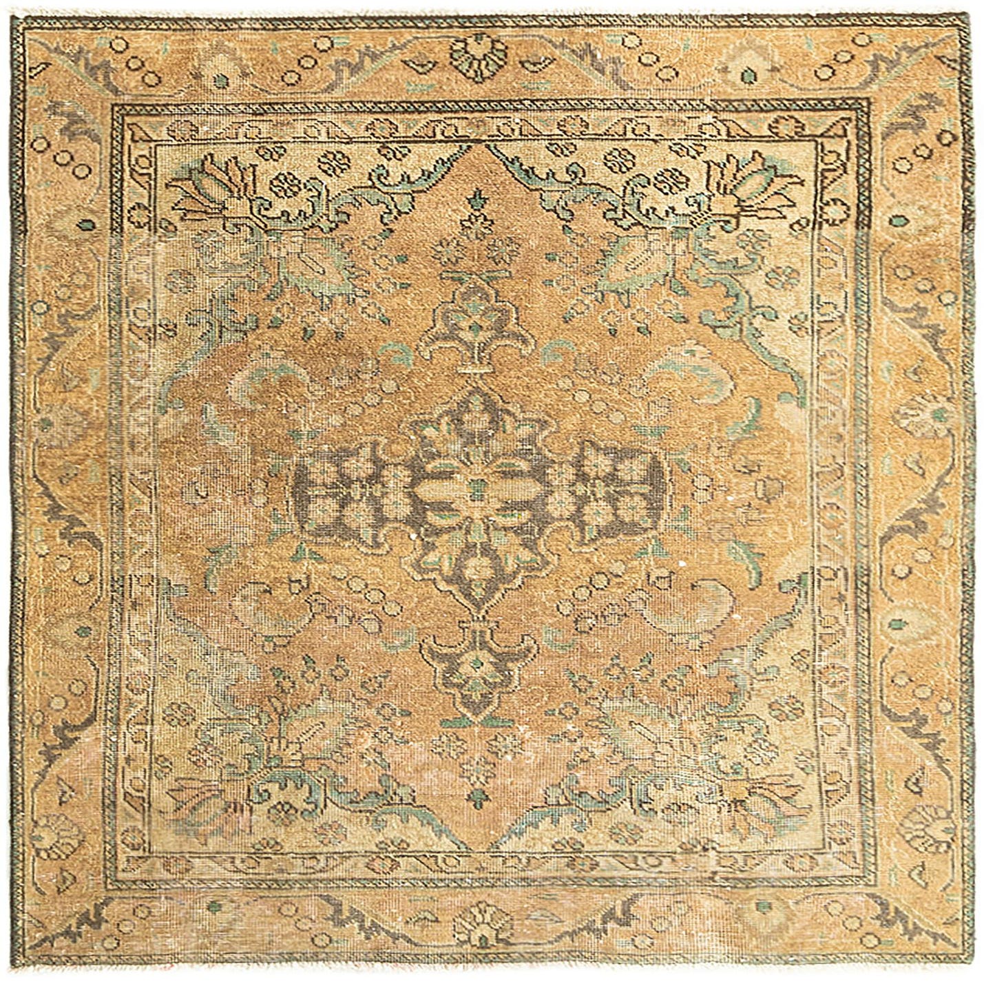A 3x5 rectangular brown and tan traditional wool rug with an intricate medallion and floral pattern.