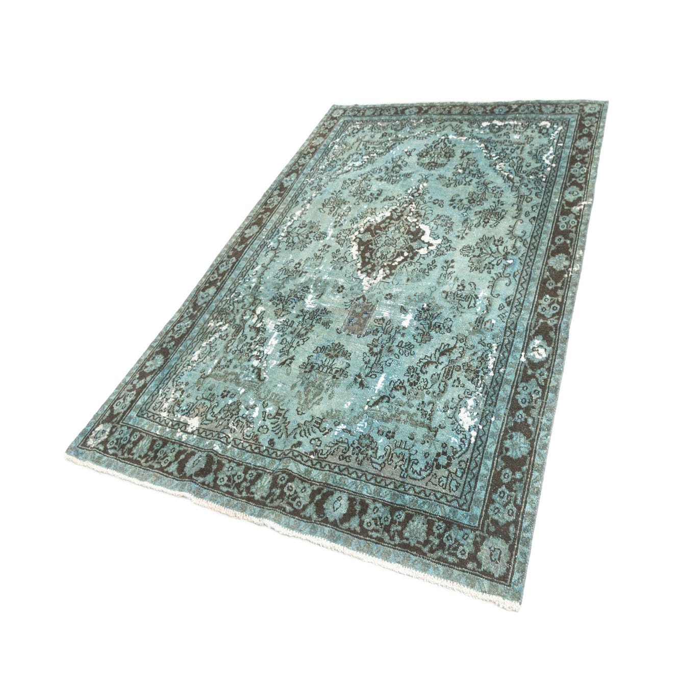 A 3x5 rectangular Vintage Collection rug featuring a distressed teal background with intricate dark brown floral and medallion patterns, ideal for an entryway.