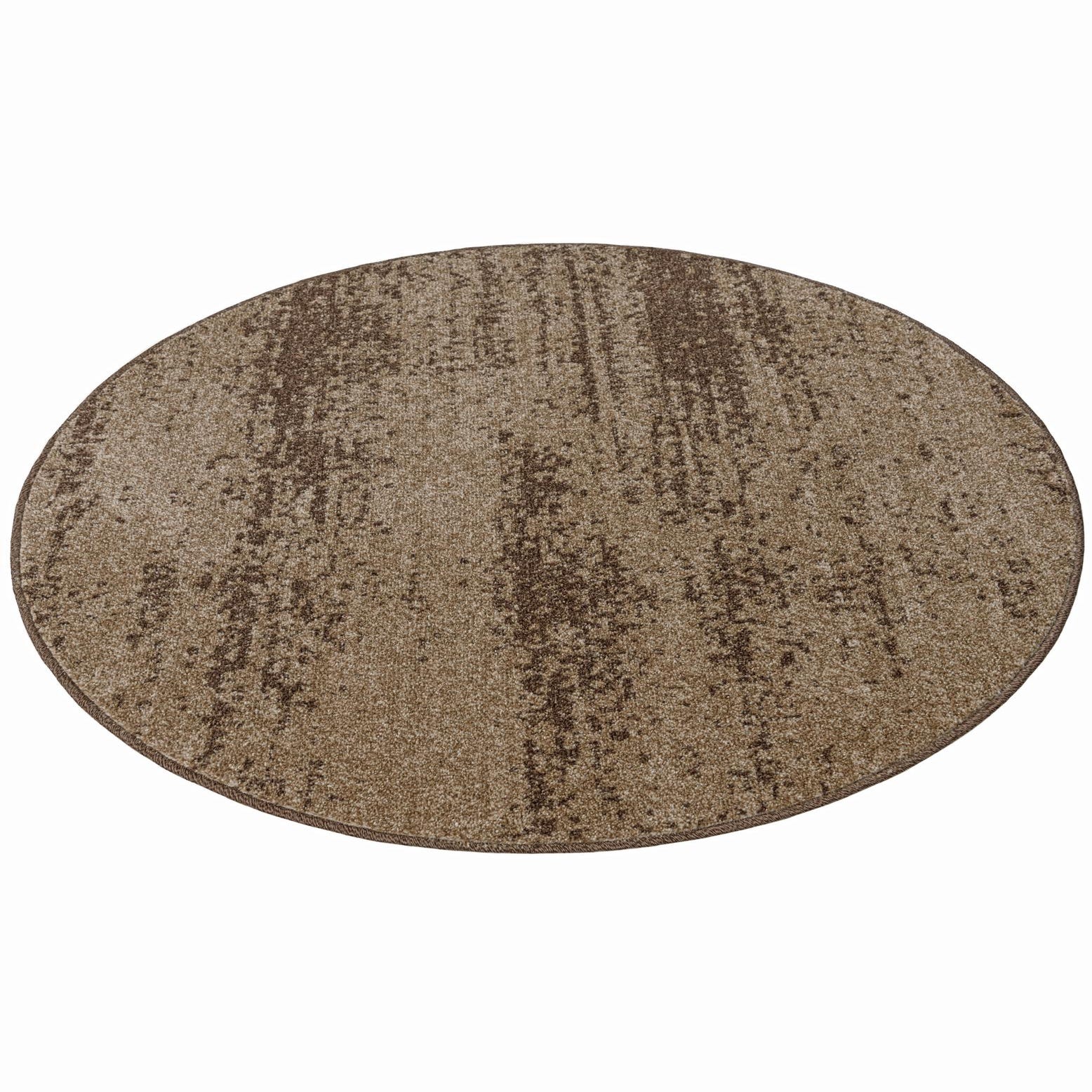 The rug showcases a simple, yet appealing pattern with a warm brown background highlighted by mottled beige accents that create a subtle, textured look. The earthy tones impart a sense of sophistication and comfort, making it versatile for various interior design settings.