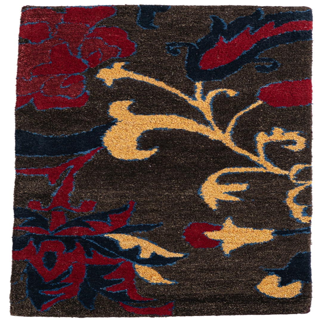 Primary color is Brown. Colors in this rug include: Brown, Red, Navy Blue, Beige, Blue.