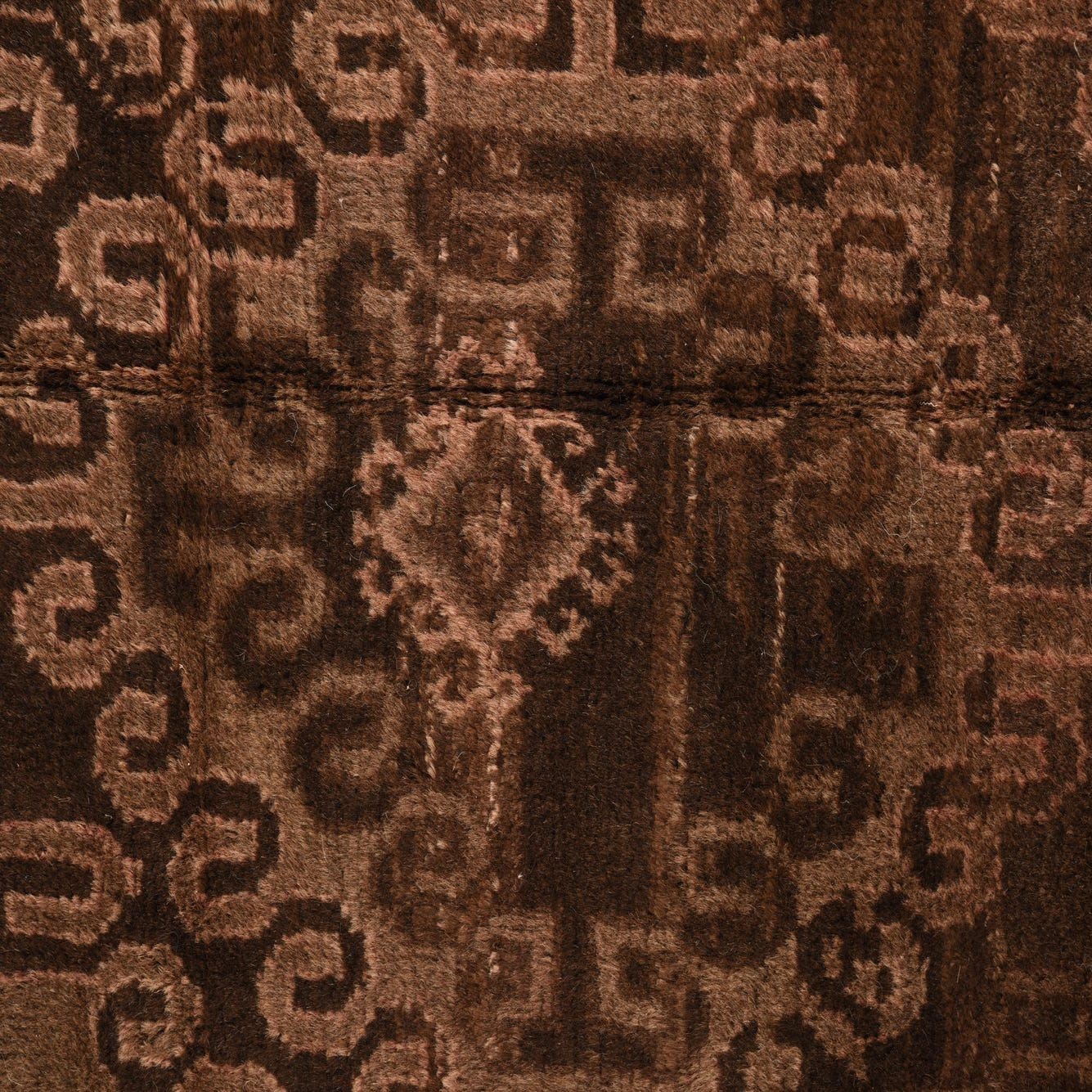 Primary color is Brown. Colors in this rug include: Brown, Light Brown, Rust Red.