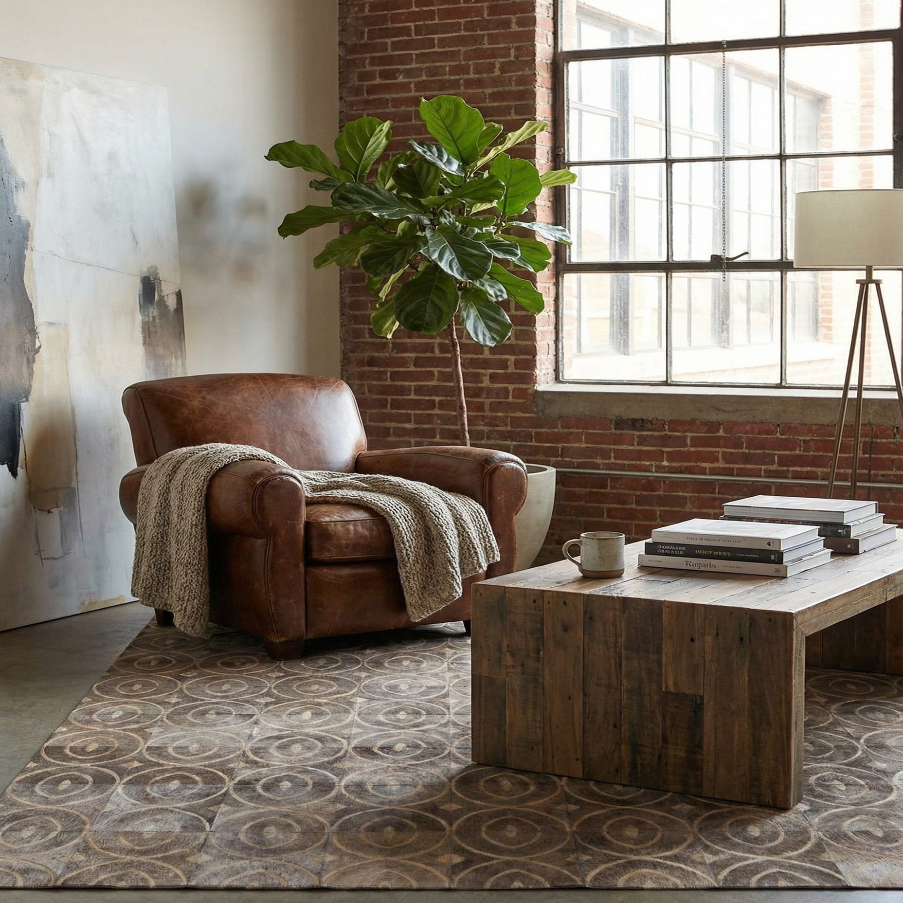 This rug would serve as a stunning focal point in a modern, minimalist space, where its clean lines and organic colors can complement sleek furniture and natural materials. Likewise, it could seamlessly integrate into a rustic or industrial setting, adding a touch of refined elegance amidst raw textures and earthy tones. In a traditional decor scheme, the Cowhide rug could offer a subtle modern twist while maintaining the warmth and coziness often sought in classic interiors.