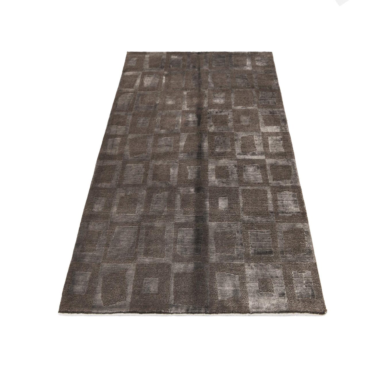 A 4x6 rectangular Darya rug in shades of brown and tan, featuring a modern Persian-inspired checkerboard pattern with textured squares.