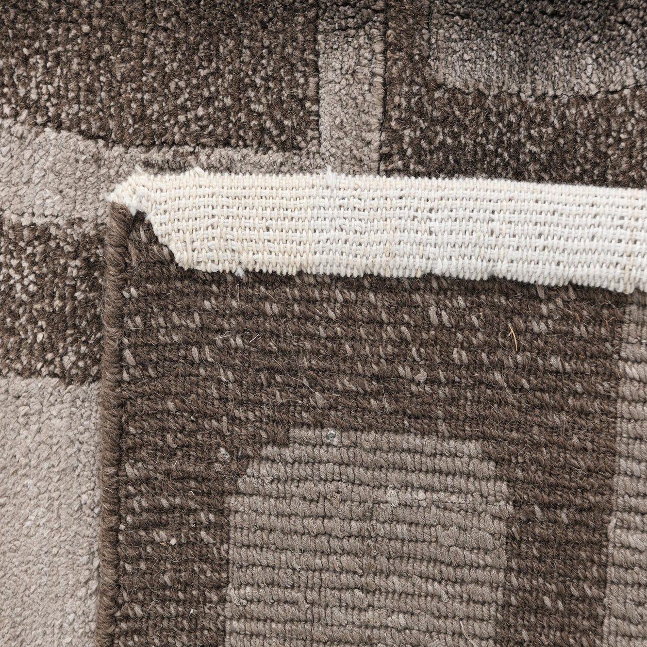 This rug works well as an anchor in a modern living room beneath a low-profile sofa and coffee table, or layered under a dining table to add visual structure without competing with wood tones. It complements mid-century and contemporary furnishings, and pairs nicely with neutral linens, leather seating, or matte metal accents for an industrial-leaning scheme. In a bedroom or home office it introduces warmth and pattern while remaining understated.