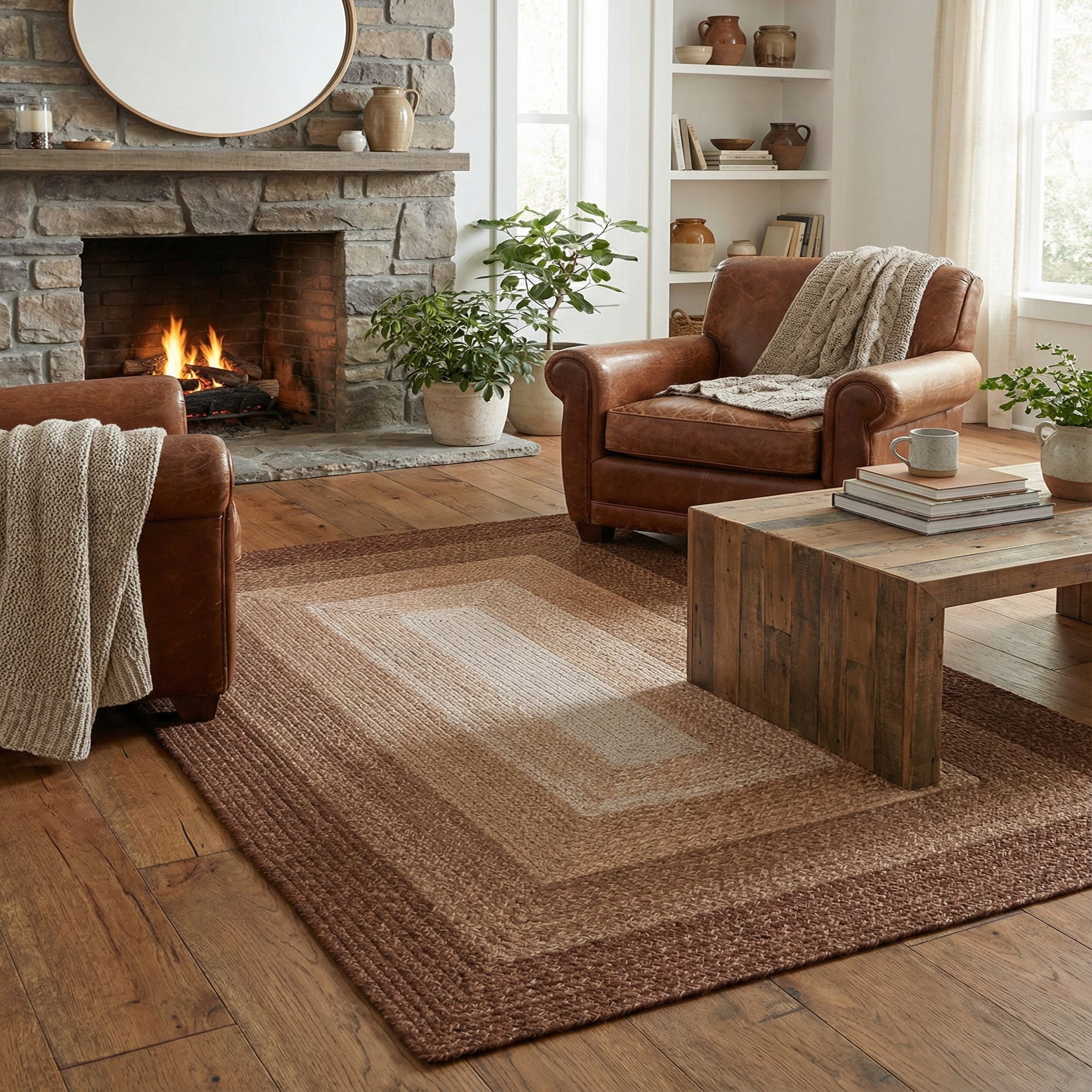 Primary color is Brown. Colors in this rug include: Brown, Light Brown.