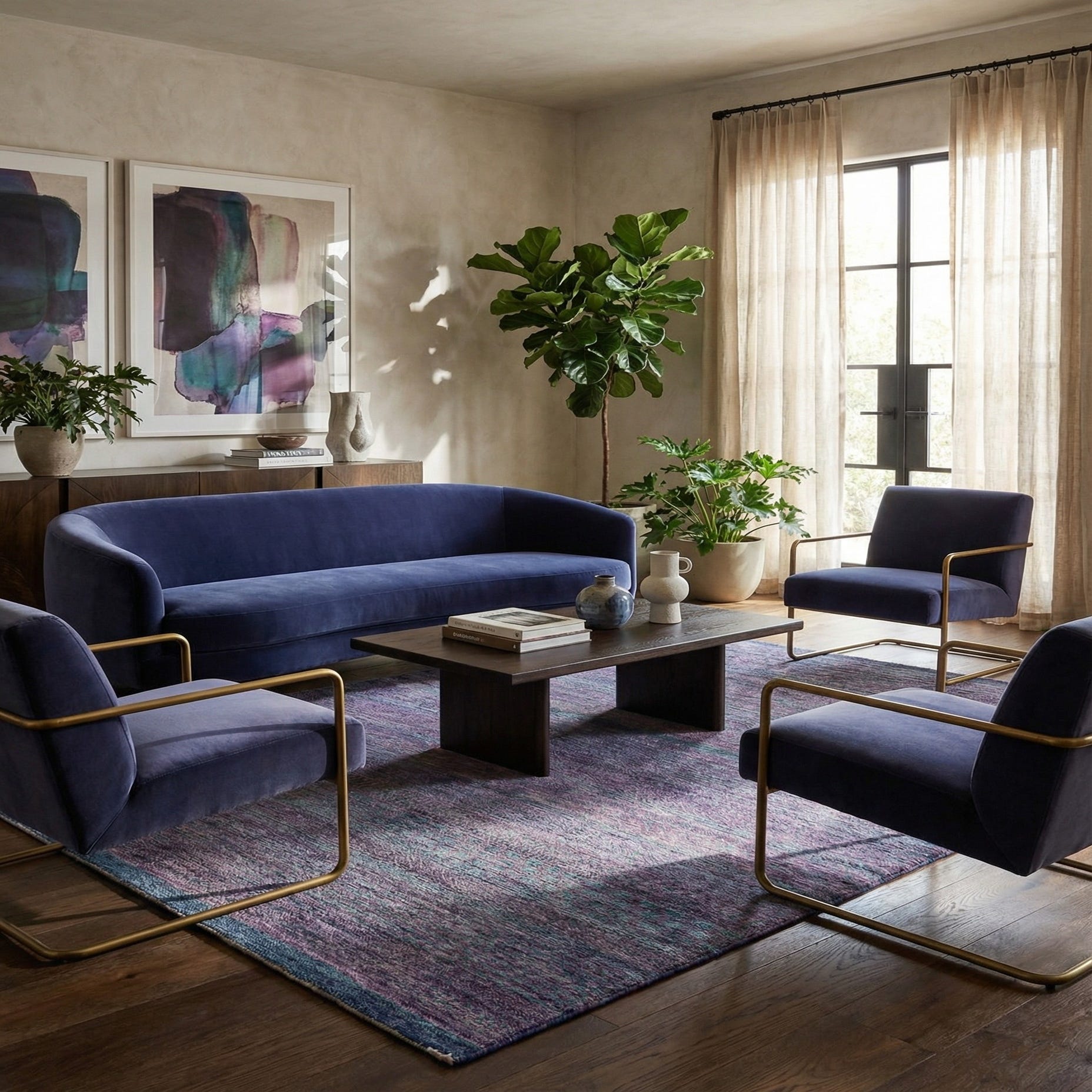 The Juma Collection presents a hand-made 4x6 wool rug that features a harmonious blend of colors including brown, violet, blue, and grey upon a rich brown background. This rug exhibits a subtle pattern, giving it a unique texture and a versatile appearance that can complement various interior design scenarios. The incorporation of multiple hues within the design allows it to add visual interest to a room without overwhelming the space.