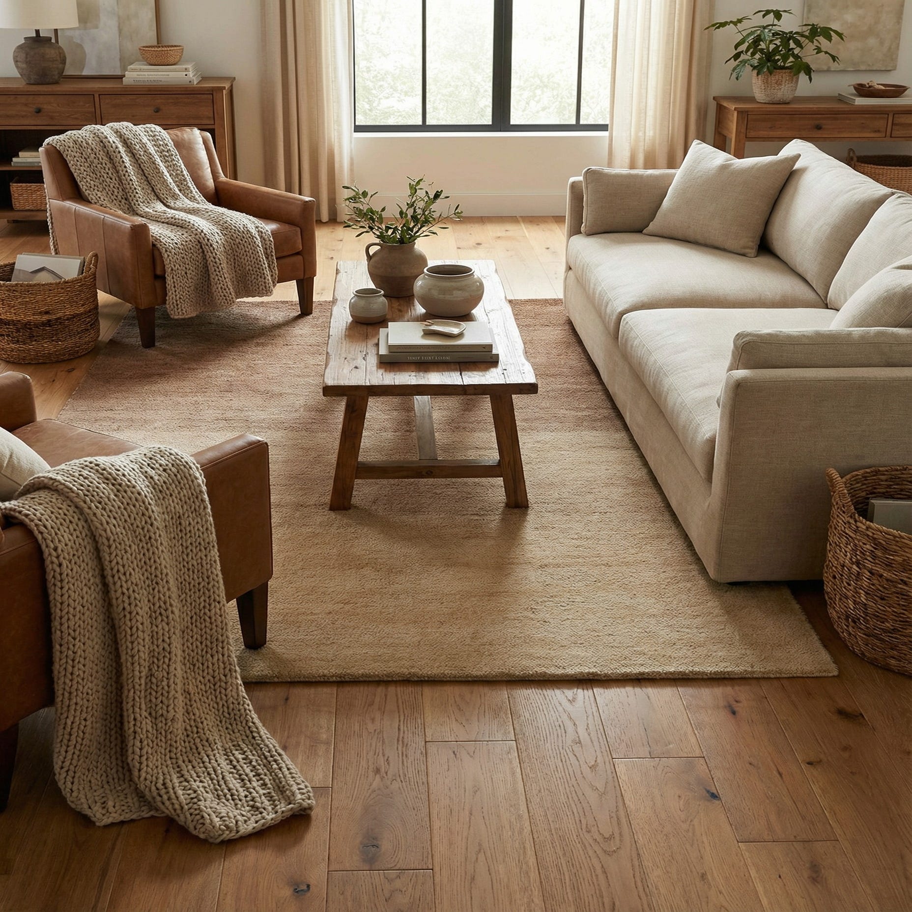 This rug works well in modern, Scandinavian, transitional, or rustic interiors. Use it to anchor a seating area, warm up a bedroom by layering it at the foot of the bed, or add subtle texture to an entry or home office. Its brown-to-beige gradient complements leather seating, warm wood finishes, and neutral linens, making it an easy choice for spaces that favor natural materials and a muted, cohesive palette.