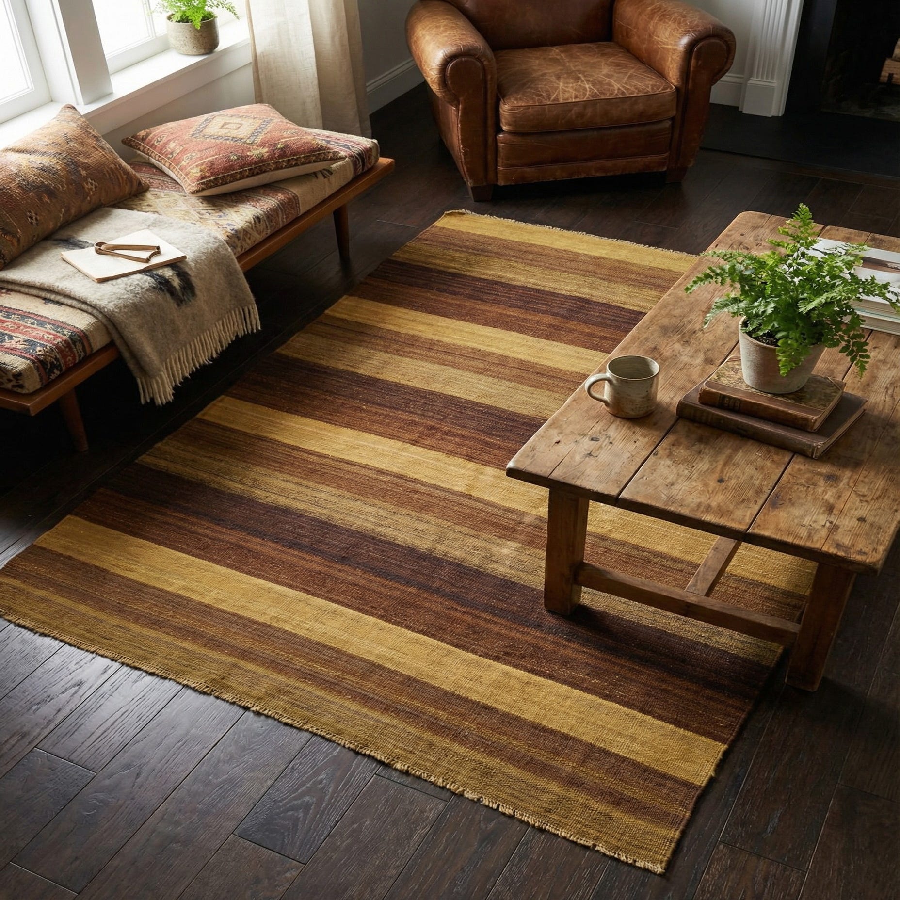 Primary color is Brown. Colors in this rug include: Brown, Light Brown, Tan.