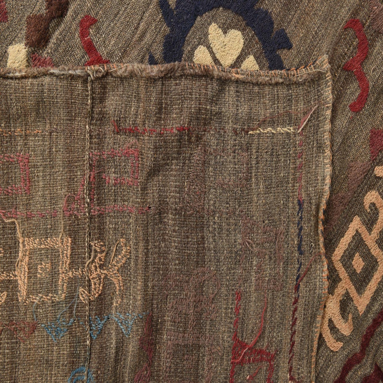The flatweave construction lends a lightweight yet hardy feel to the rug, making it an ideal choice for a variety of settings. Due to its earthy and multicolored palette, this Kilim rug can serve as a focal point in minimalist decors or complement bohemian and eclectic styled spaces. The versatile colors offer compatibility with both dark and light furniture, ensuring adaptability to a broad array of interior design scenarios. This piece’s artisanal aesthetic pairs well with natural wood elements, leather furnishings, and could elegantly anchor a cozy reading nook or add warmth to a home office.
