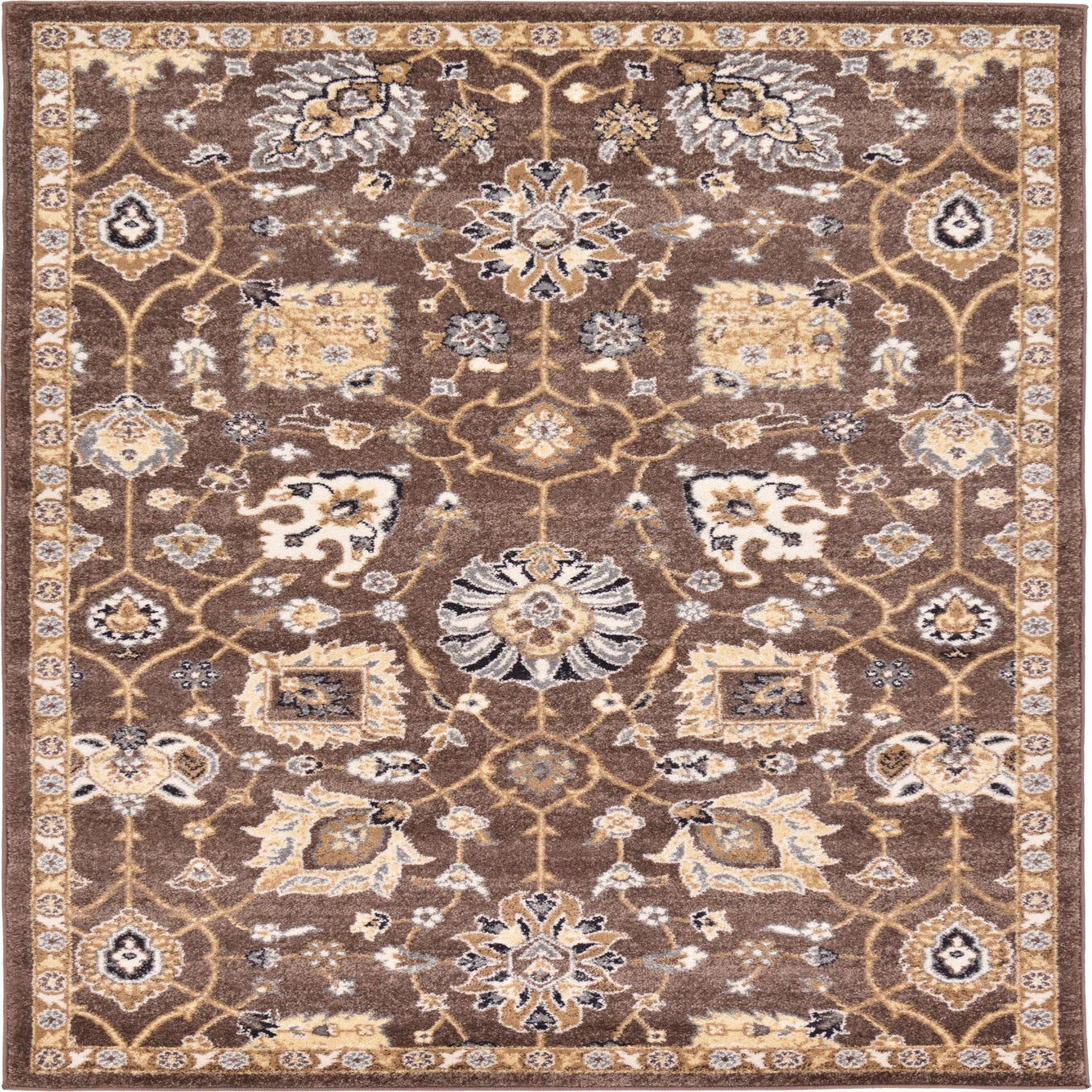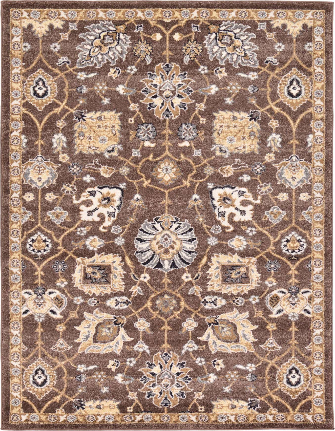 Primary color is Brown. Colors in this rug include: Brown, Black, Cream, Gray, Ivory, Tan.