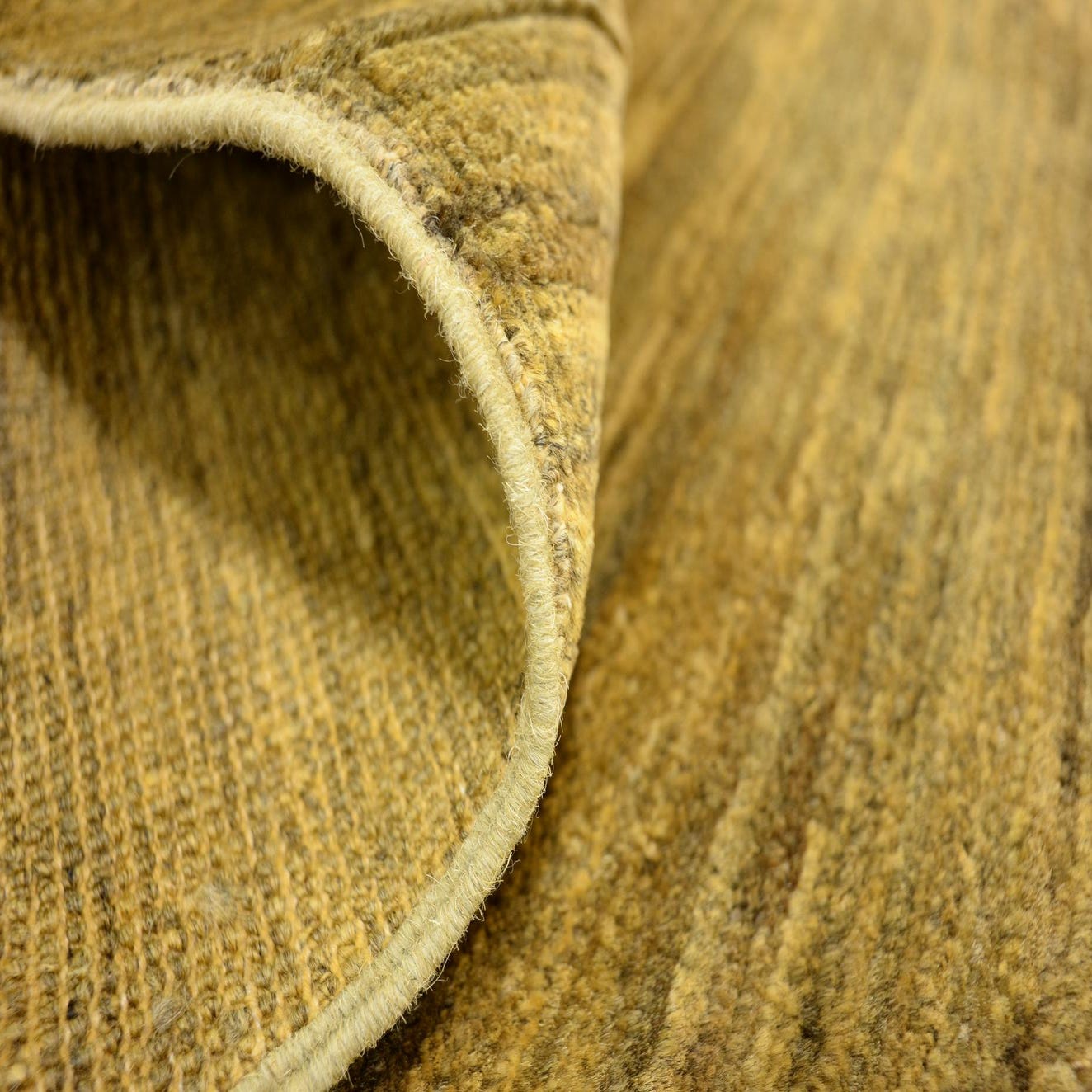 Hand-knotted from 100% hand-spun wool, the surface has a dense, low-to-medium pile with a supple, slightly uneven texture you can feel when you run your hand over it. The hand-spun yarn produces gentle slubs and color shifts that add tactile interest and a soft, matte finish. Well-suited for a living area beneath a coffee table, layered at the foot of a bed, or anchoring a compact home office, this rug pairs particularly well with warm woods, leather seating, neutral linens, and clean-lined modern furnishings for a relaxed, collected look.