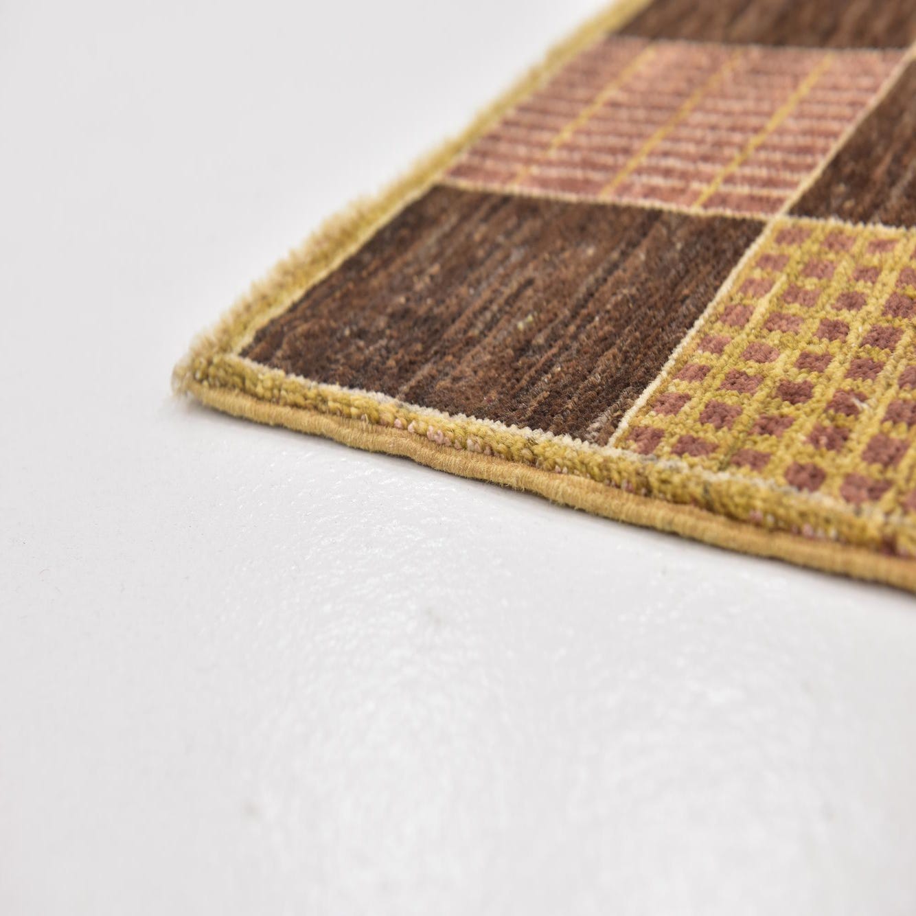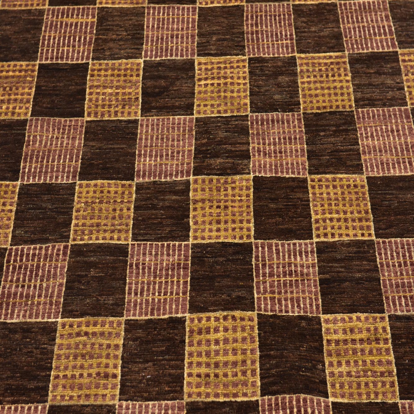 A 4x6 rectangular Modern Ziegler wool rug featuring a checkerboard pattern in various shades of brown and tan.