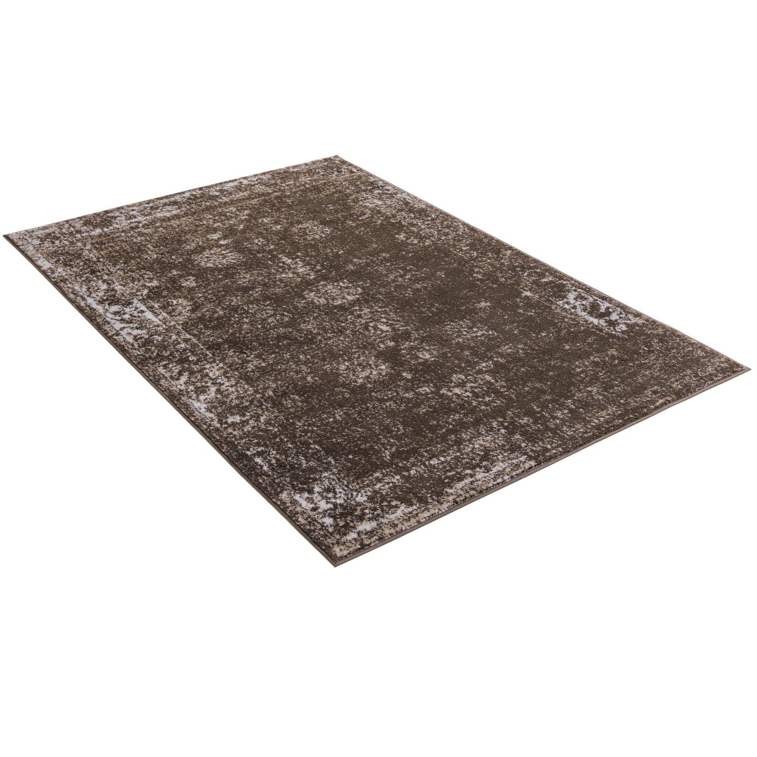 The Monte Carlo collection offers a machine-woven rug crafted from 100% polypropylene, presenting durability and ease of maintenance. This 4x6 rug features a brown background, tastefully complemented by shades of ivory and tan. The pattern showcases a distressed look, lending the piece a vintage flair that is rich with character and effortlessly complements a range of interior themes.