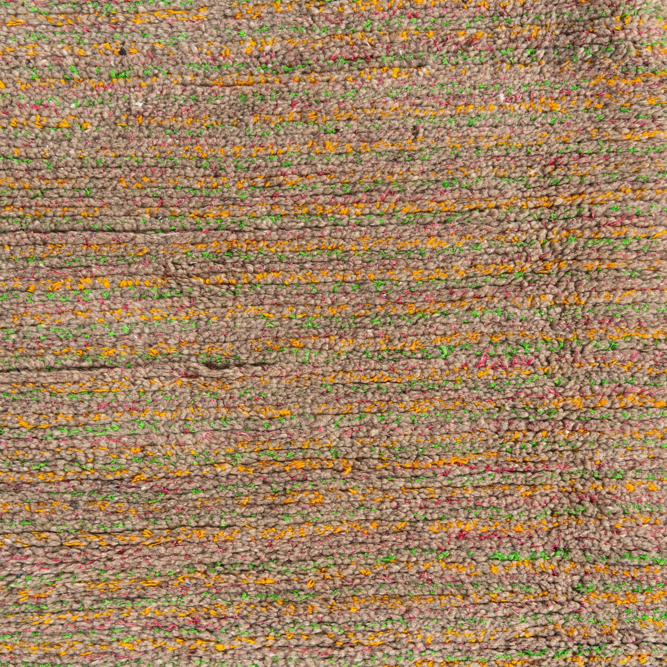 Primary color is Brown. Colors in this rug include: Brown, Green, Yellow, Pink.