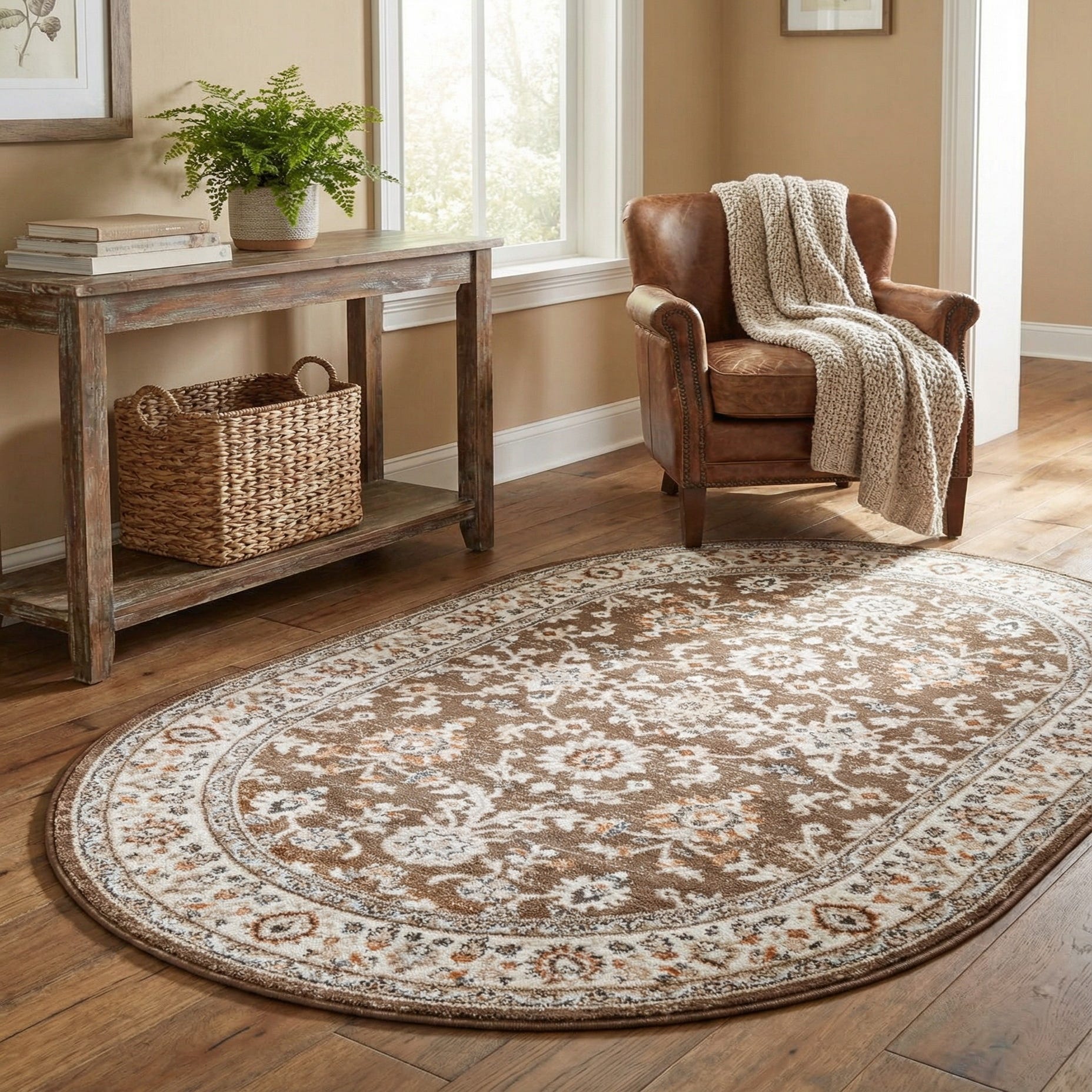 Primary color is Brown. Colors in this rug include: Brown, Gray, Ivory, Light Brown, Terracotta.