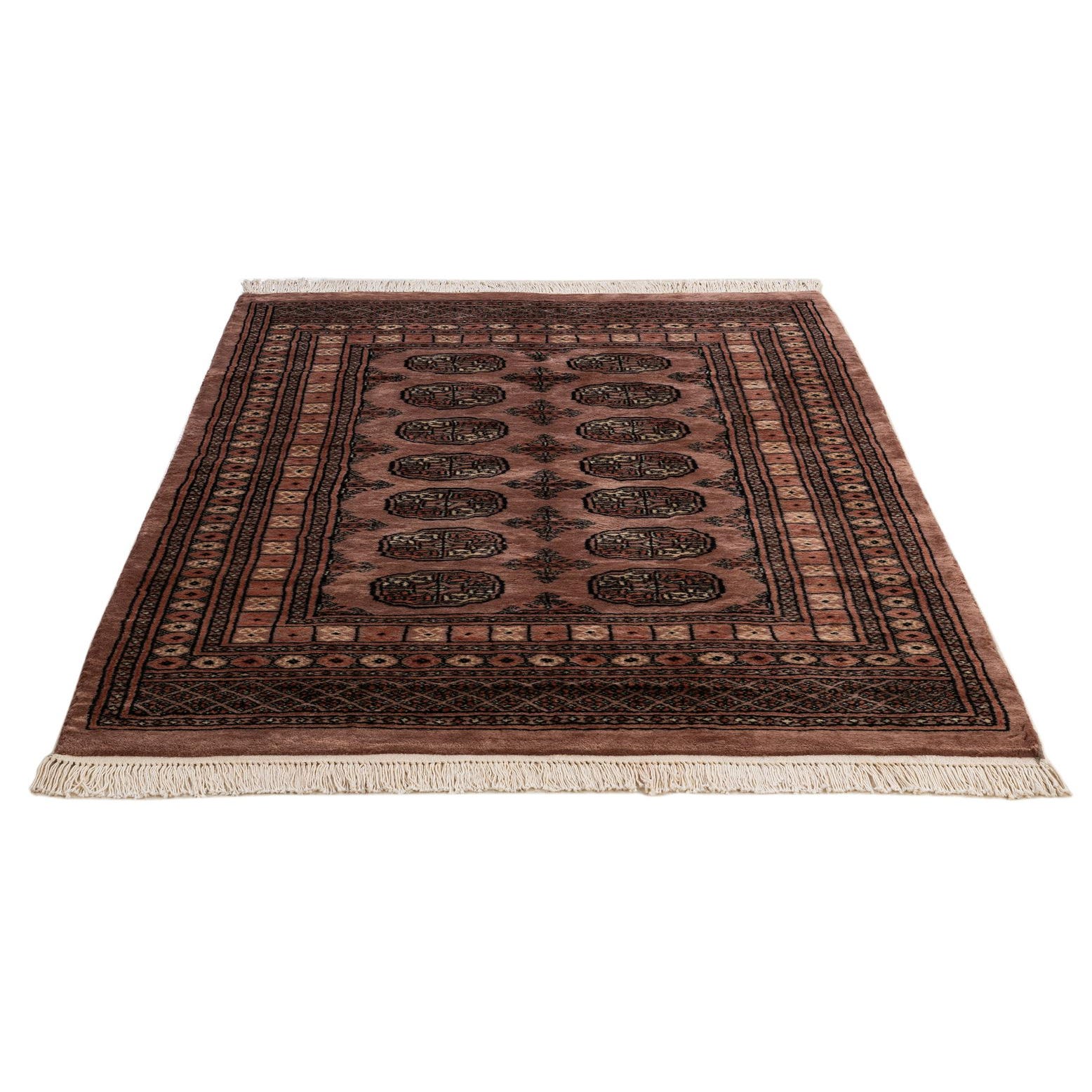 A 4x6 rectangular Torkaman rug in shades of brown and tan, featuring traditional Persian patterns and fringe.