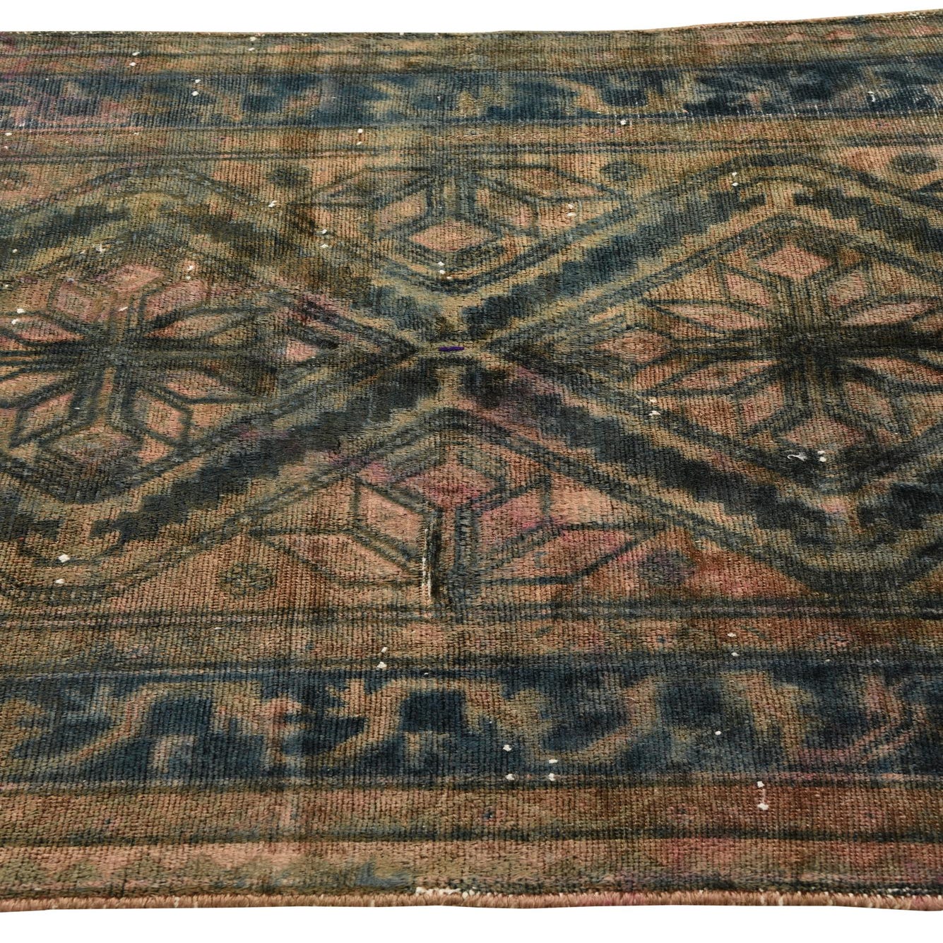 This Persian Ultra Vintage rug is an antique Persian Rug that has been washed, over-dyed, and then shaved down to a low pile. Look at the detail pictures to fully appreciate the uniqueness of this piece.