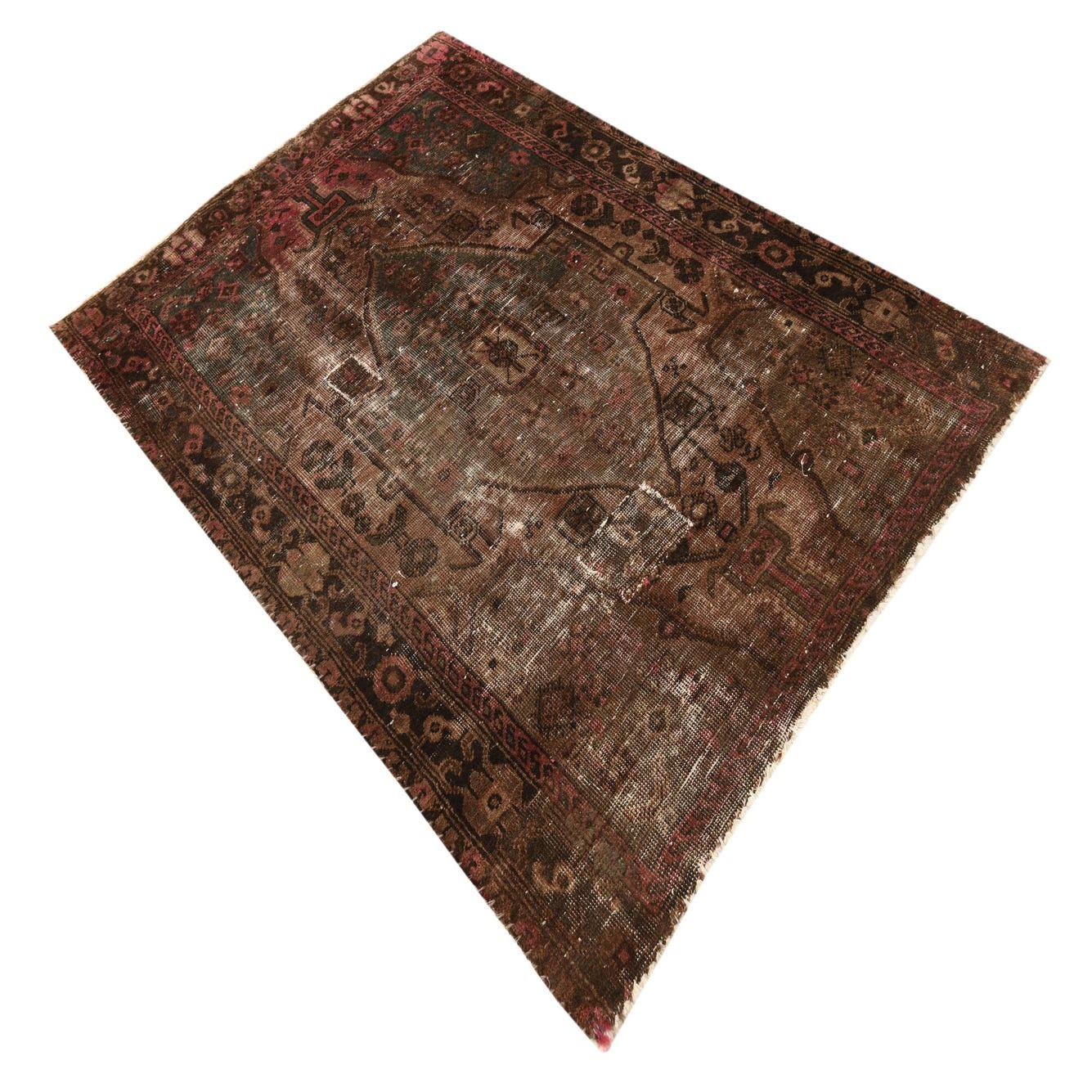 This Persian Ultra Vintage rug is an antique Persian Rug that has been washed, over-dyed, and then shaved down to a low pile. Look at the detail pictures to fully appreciate the uniqueness of this piece.