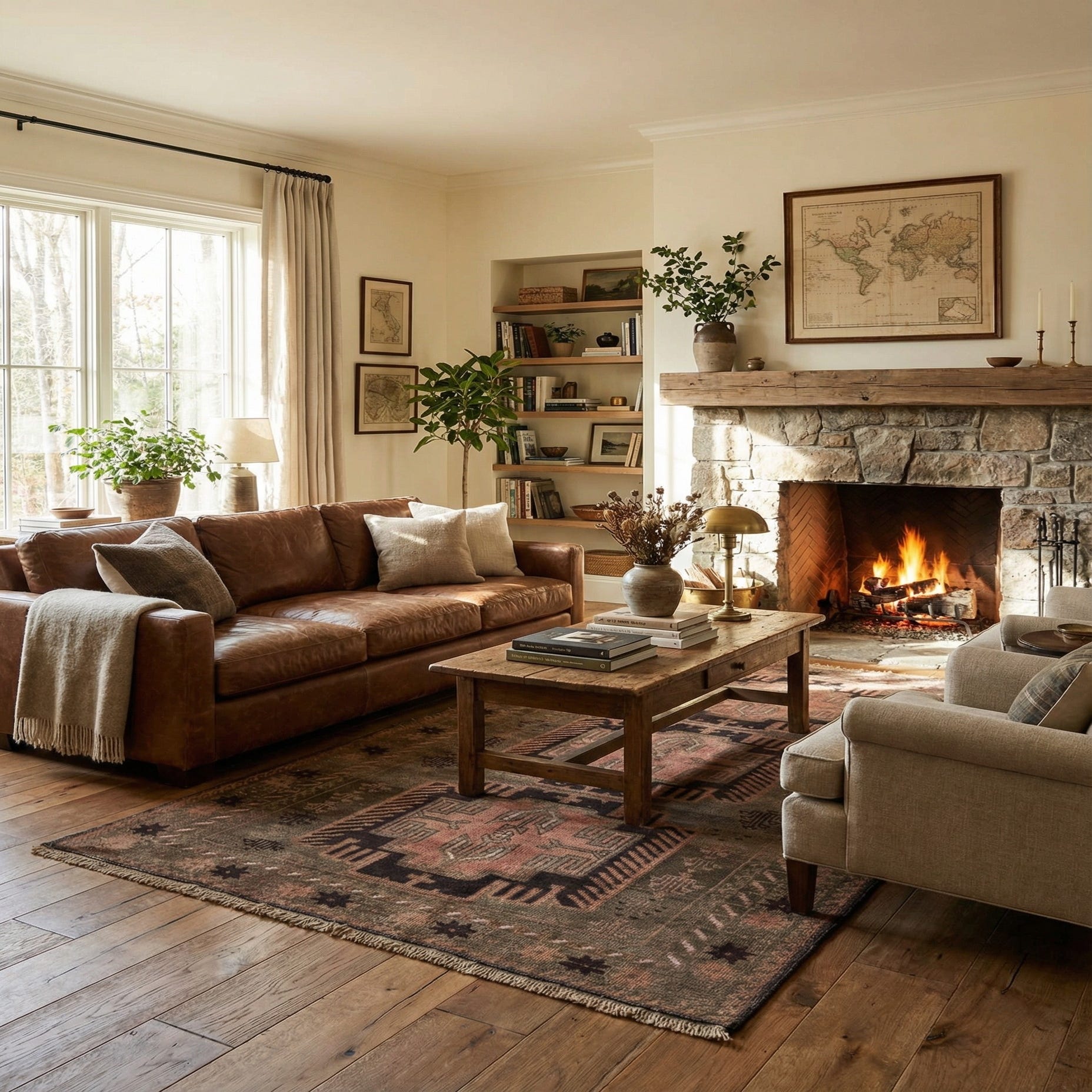 Due to its classic pattern and earthy colors, this piece can blend seamlessly into a range of decors, from Bohemian to Southwestern, traditional to eclectic. It can serve as a focal point in a minimalistic setting or as an anchoring element amidst more vibrant furnishings. It would be an appropriate choice for living rooms, home offices, or cozy reading nooks where its rich textures and comforting hues can enhance the sense of warmth and sophistication.