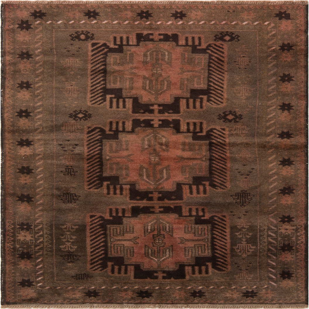 A 4x6 rectangular Ultra Vintage wool rug with a distressed brown and tan Persian pattern, featuring geometric motifs.