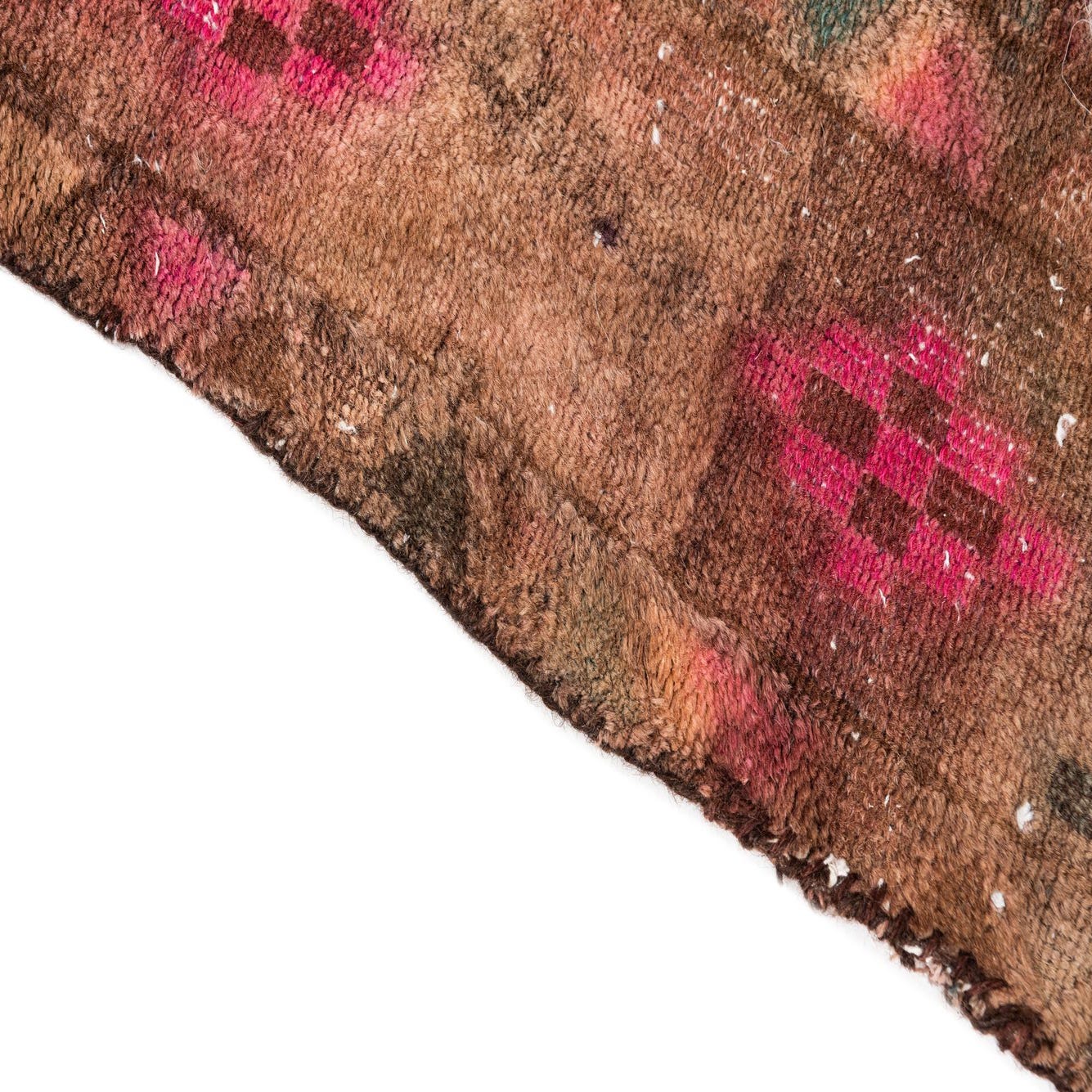 Primary color is Brown. Colors in this rug include: Brown, Green, Light Blue, Pink, Ivory.