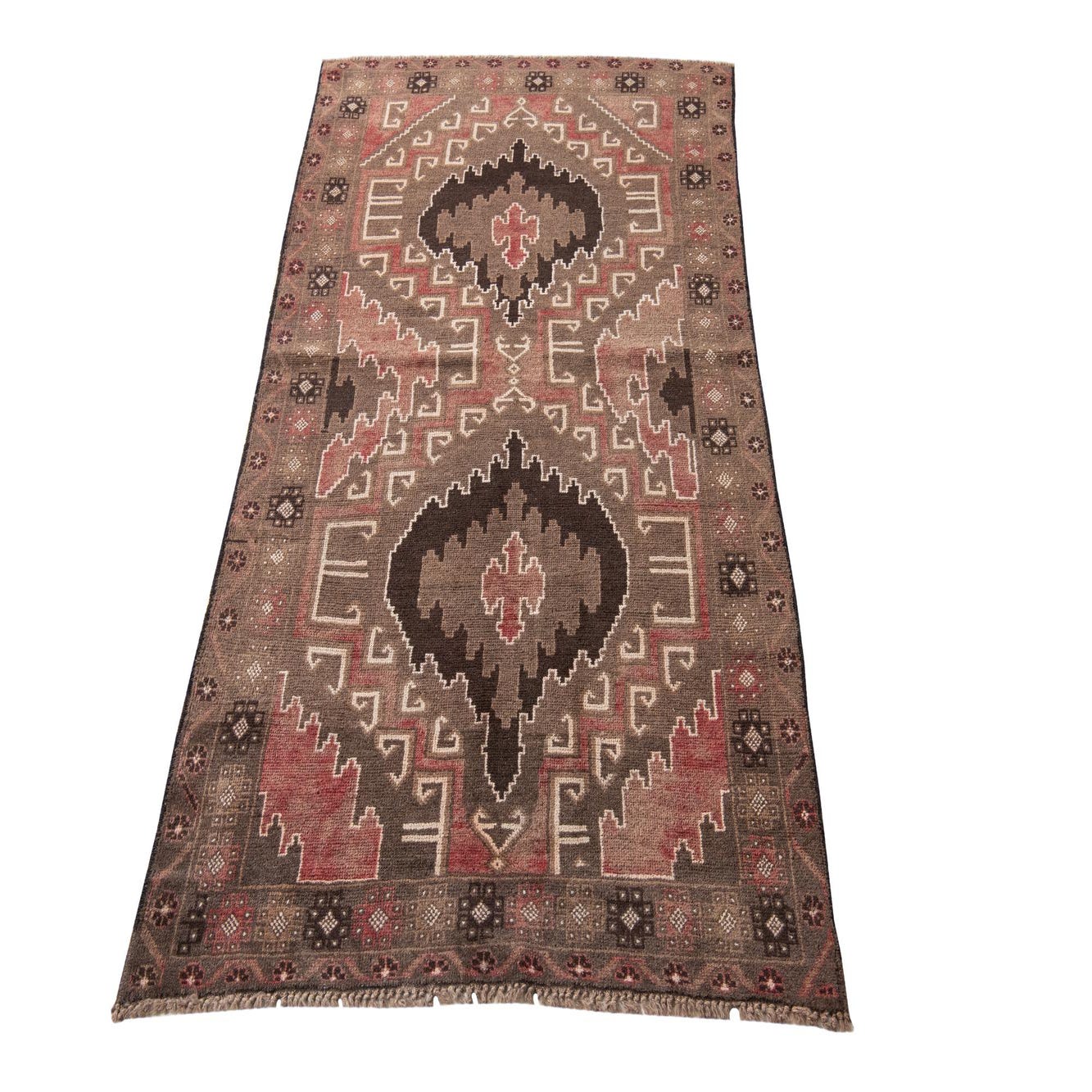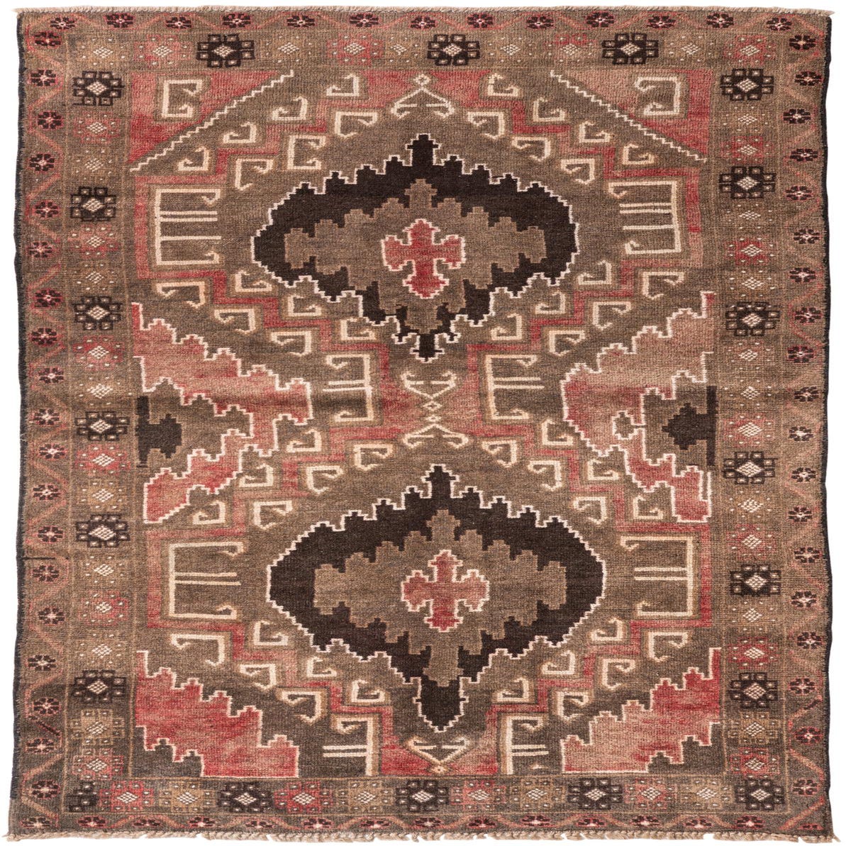Primary color is Brown. Colors in this rug include: Brown, Ivory, Rust Red.