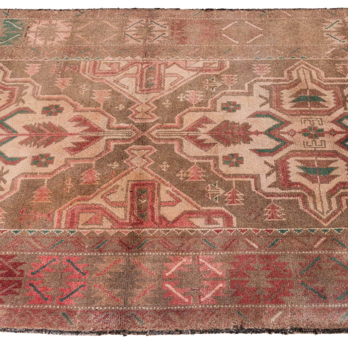 The rug's semi-antique status, being 40-60 years old, adds historical resonance and denotes a story woven into its fibers. Noteworthy is the evidence of repair, which underscores the rug's journey through time and the care invested in its maintenance.