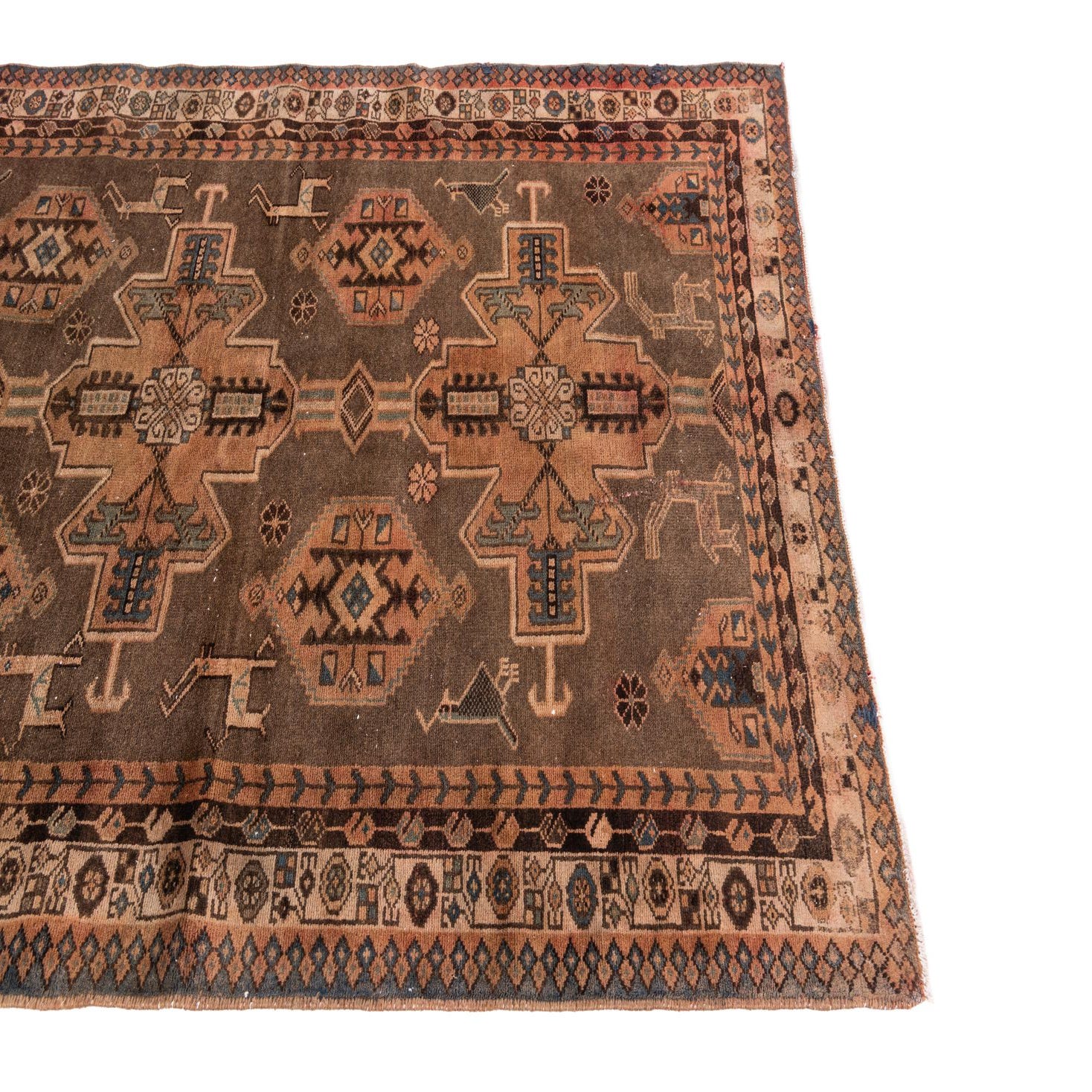 This Persian Ultra Vintage rug is an antique Persian Rug that has been washed, over-dyed, and then shaved down to a low pile. Look at the detail pictures to fully appreciate the uniqueness of this piece.