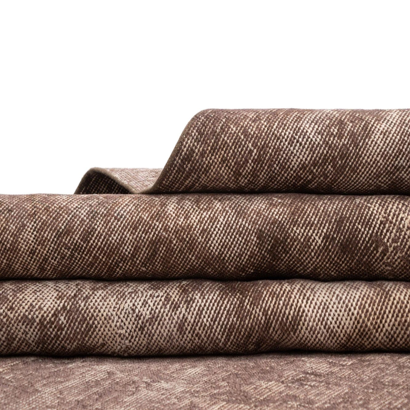 A 4x6 rectangular brown and tan Persian wool rug with a distressed, vintage look, suitable for an entryway or living room.