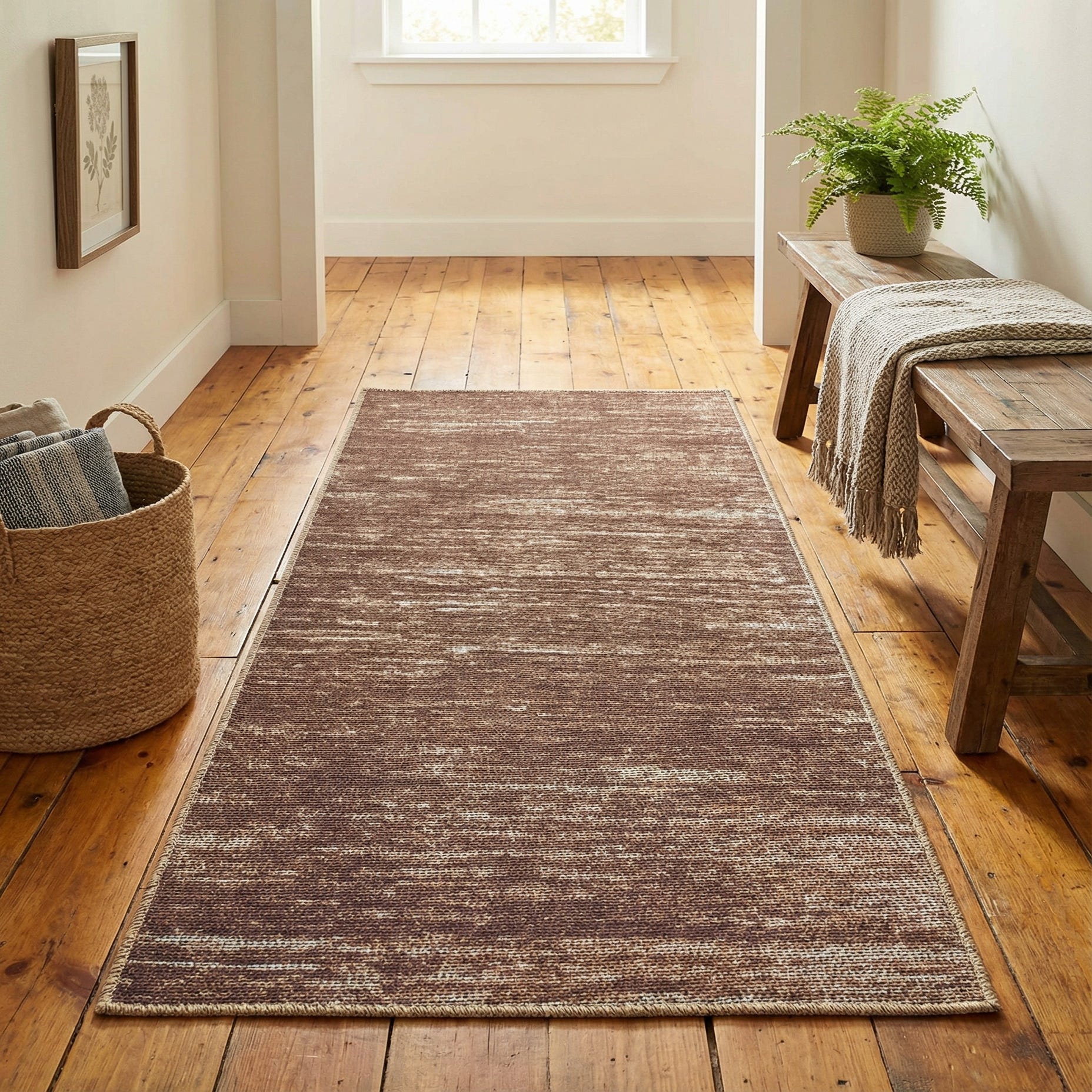 This runner works well in a hallway or entry where you want warmth and quiet visual interest without a busy pattern. Pair it with warm wood flooring and leather or woven accents for a cozy, layered feel, or let it ground a narrow kitchen corridor between cabinetry. It also complements transitional and mid-century schemes when combined with muted linens and brass or matte-black fixtures.