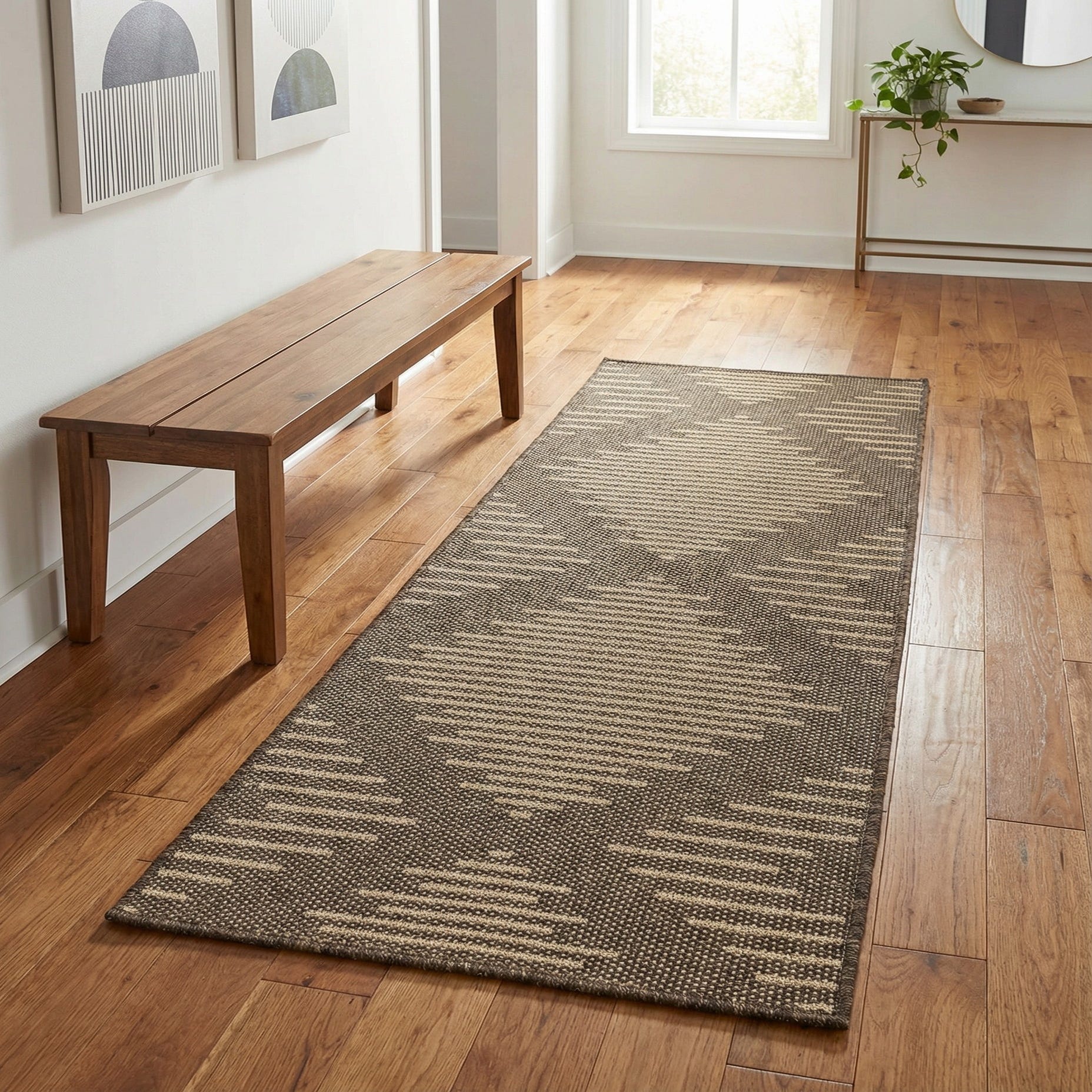 The stain-resistant finish of the rug ensures practical maintenance, while its pet-friendly and shed-free properties make it an ideal choice for households with pets or those seeking minimal upkeep. The design and color palette of this runner make it suitable for a variety of interior spaces—from contemporary to rustic settings. It can serve as a defining element in a minimalist decor or provide a grounding effect in a more eclectic ambiance.