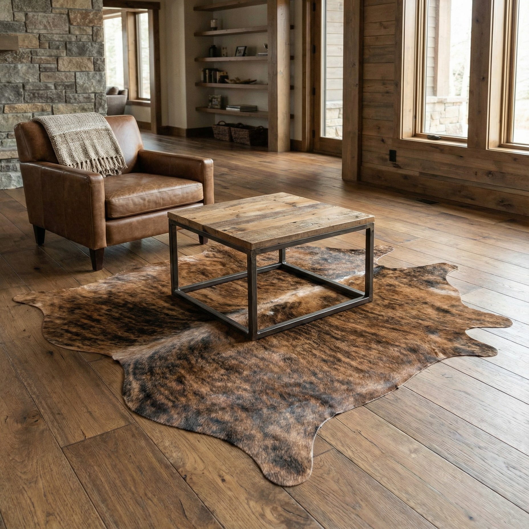 4' 10 x 5' 3 Cowhide Leather Square Rug