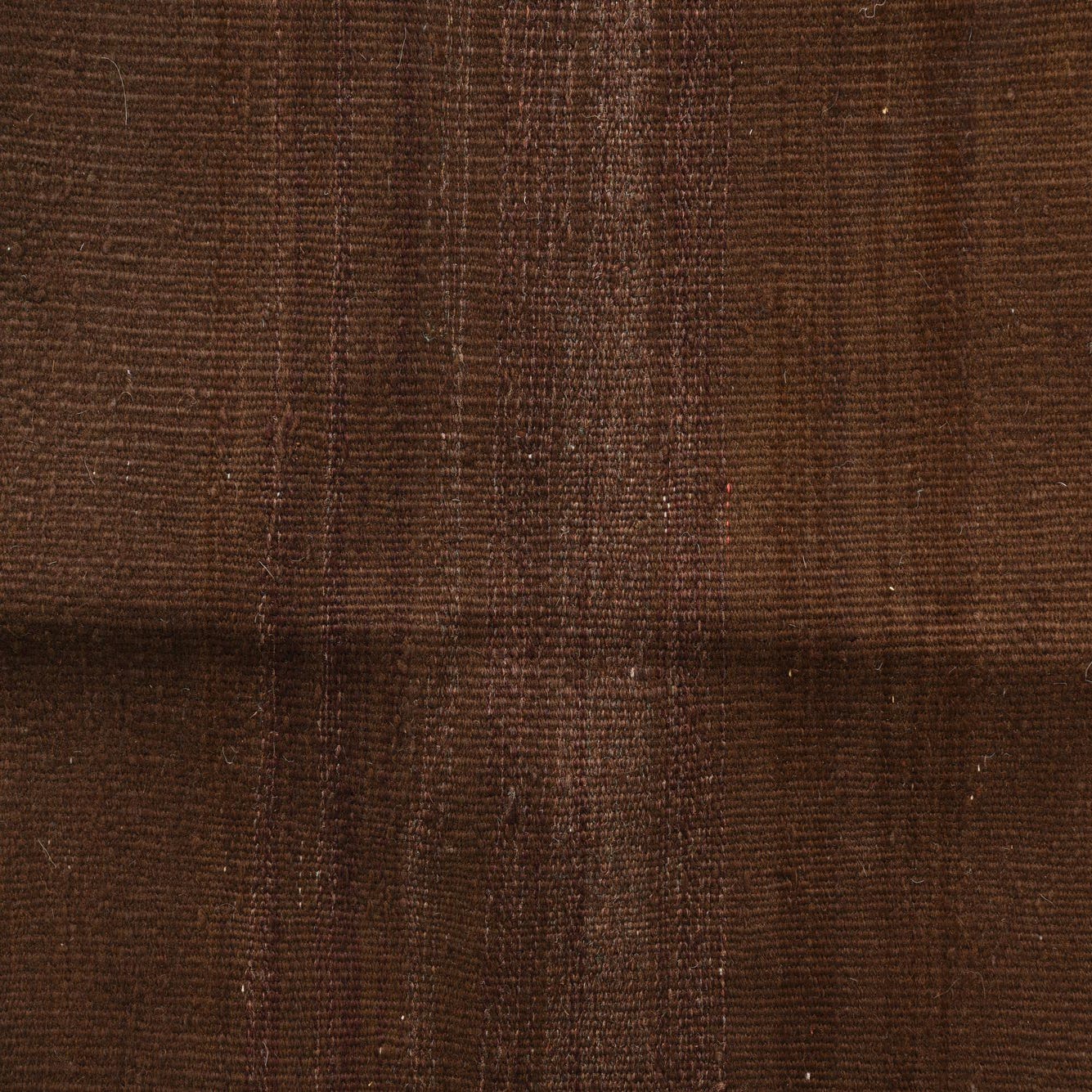The Kilim Fars Collection presents a 5 Ft Square hand-woven rug showcasing a blend of traditional patterns and a rich color palette set against a warm brown background. Made of 100% wool, this semi-antique piece (40-60 years old) displays a weathered charm that pairs well with its geometric borders and linear designs. The interplay of brown, ivory, navy blue, red, and green colors gives the rug depth and versatility, while its flatweave texture lends a durable, tactile quality. The fringe adds a classic touch that complements the artisanal feel of the rug.