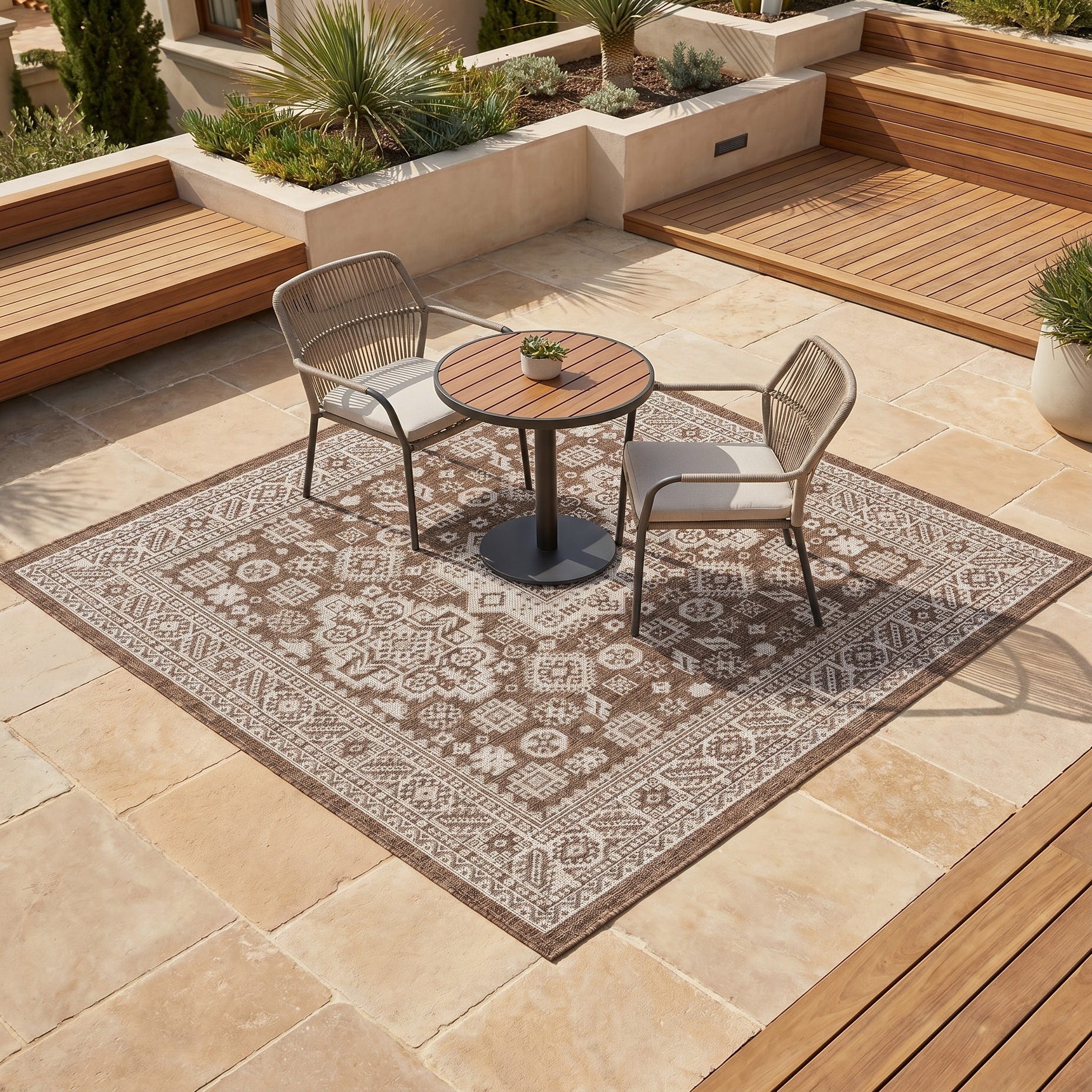 5' 3 x 5' 3 Easy-Clean Aztec Indoor / Outdoor Square Rug