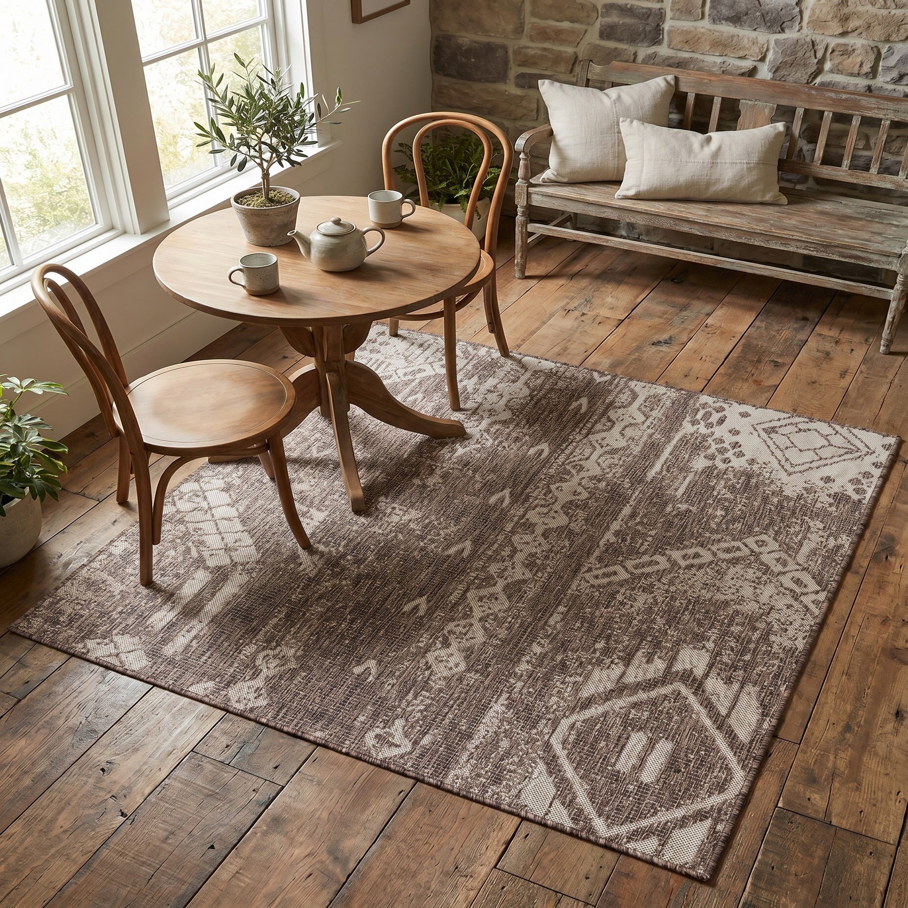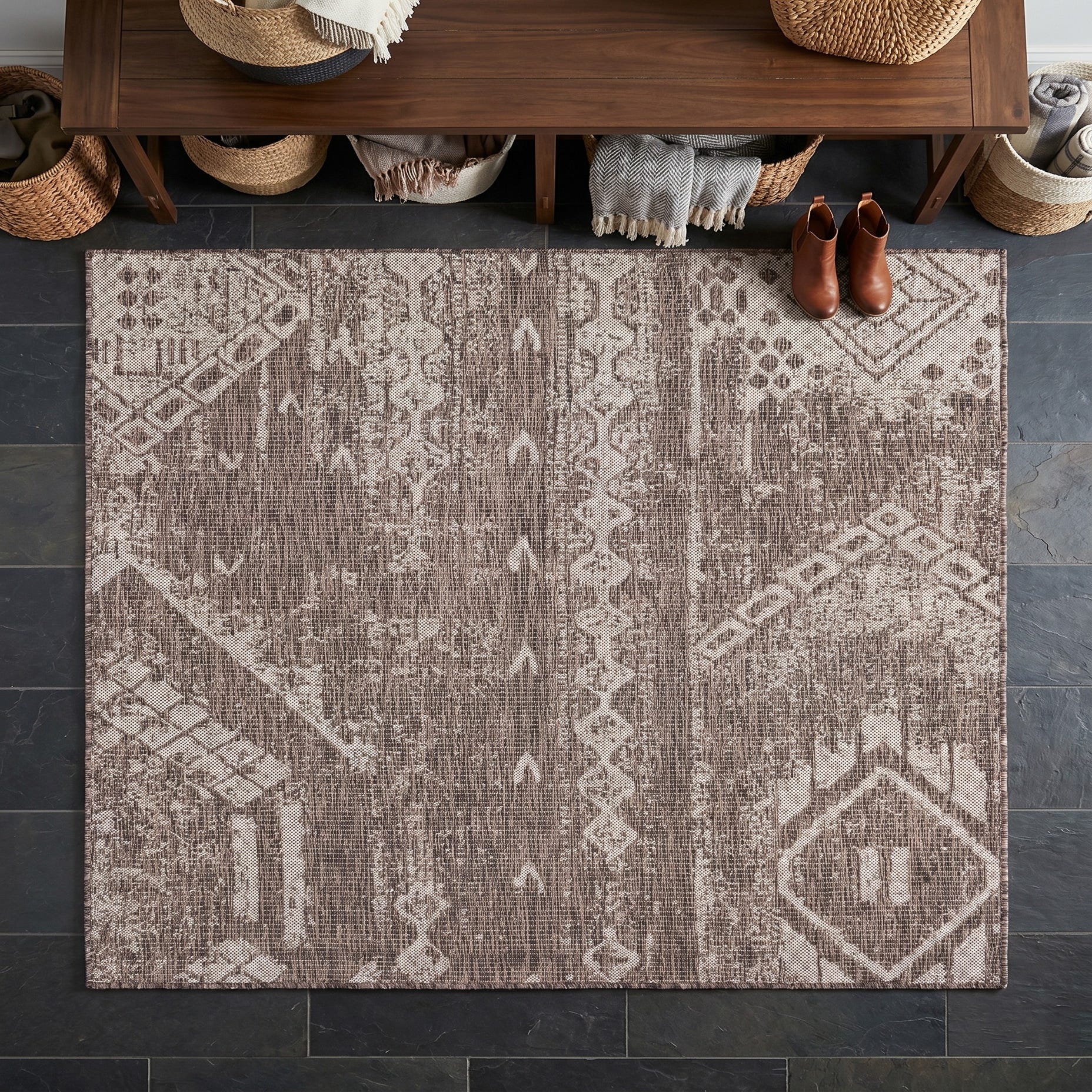 5' 3 x 5' 3 Easy-Clean Bohemian Indoor / Outdoor Square Rug
