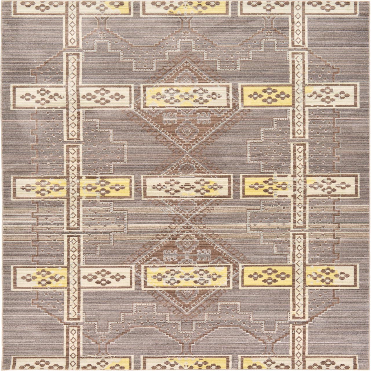 Primary color is Brown. Colors in this rug include: Brown, Beige, Yellow.