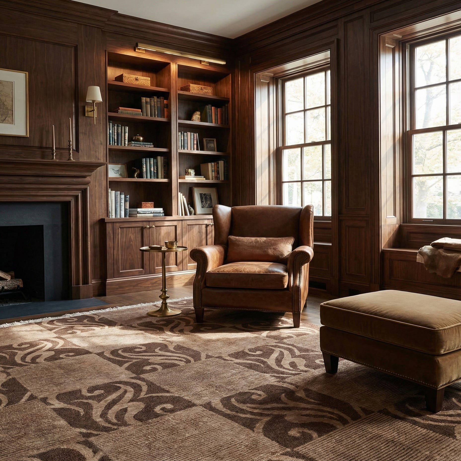 Primary color is Brown. Colors in this rug include: Brown, Light Brown.