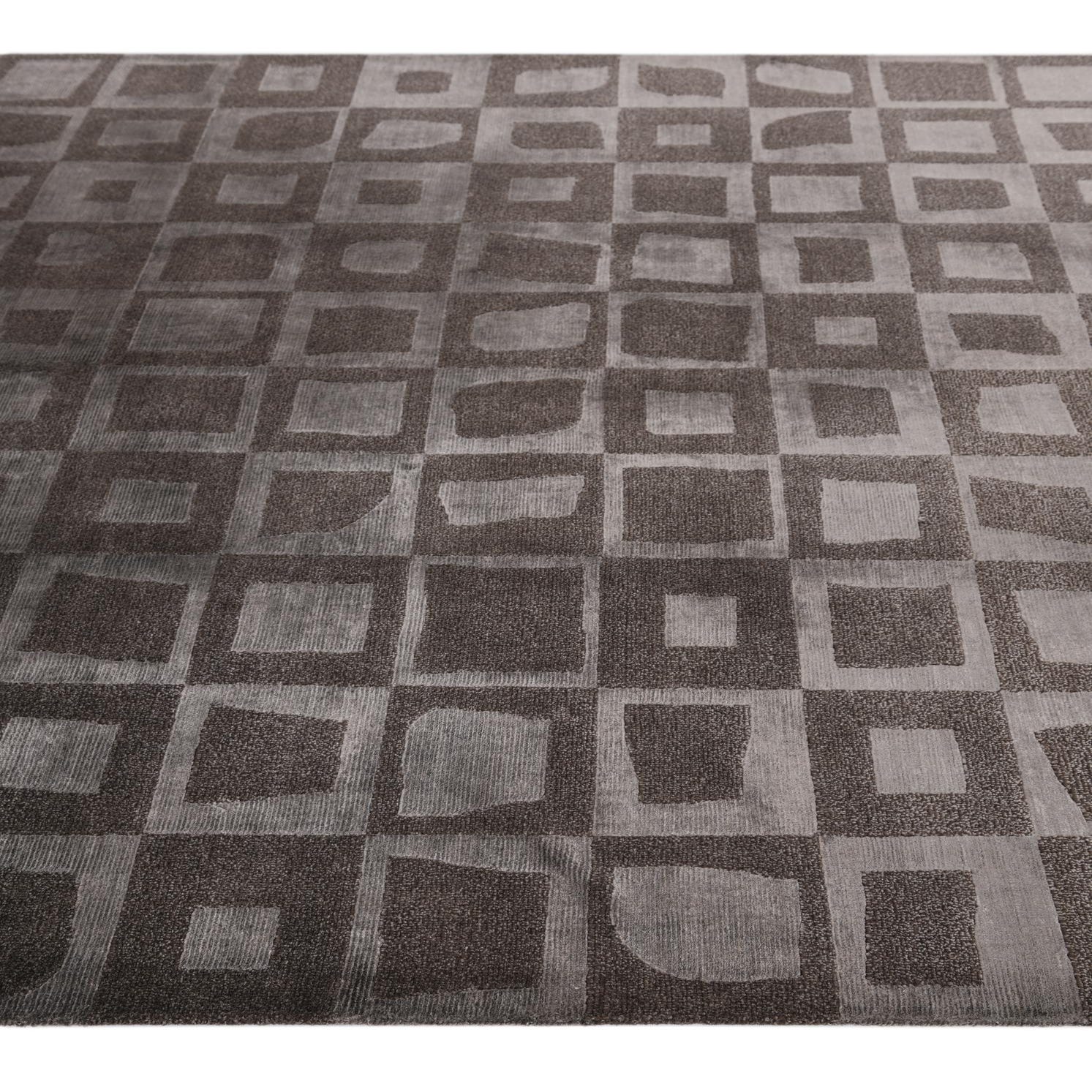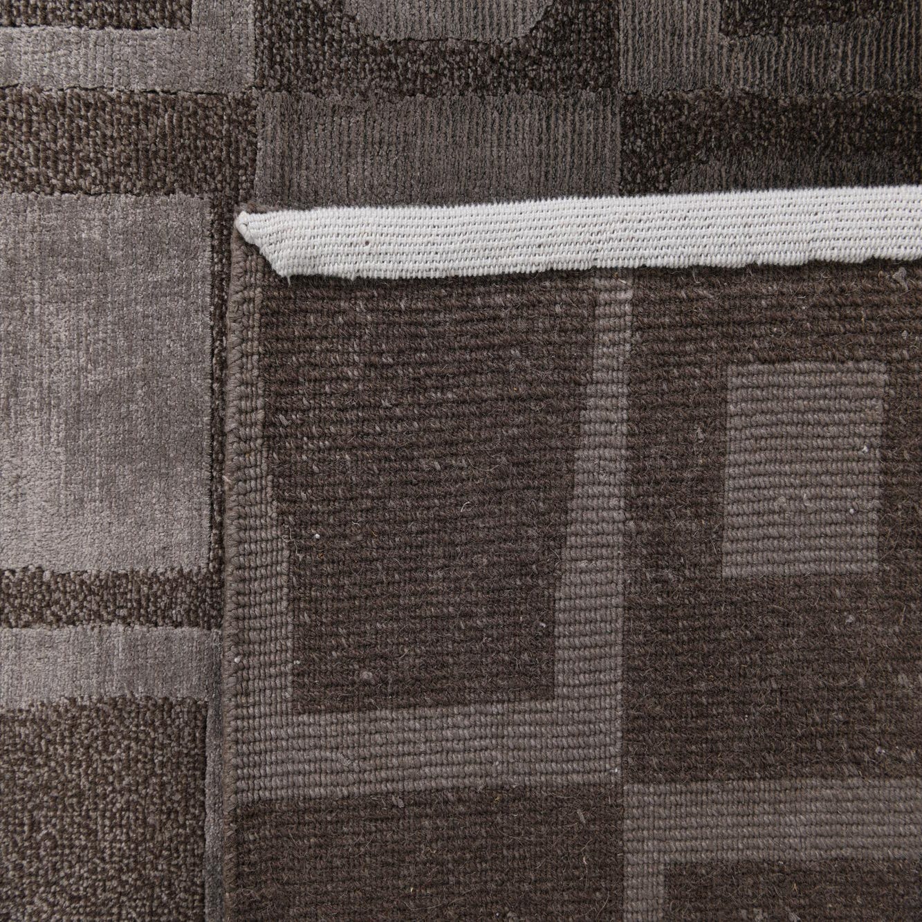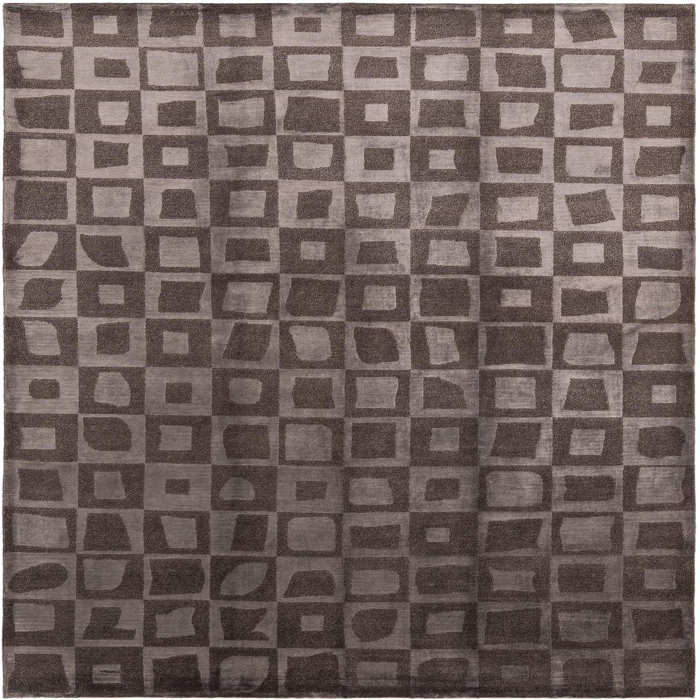 A 5x8 rectangular Darya Collection rug featuring a modern geometric pattern of varying brown and tan squares.