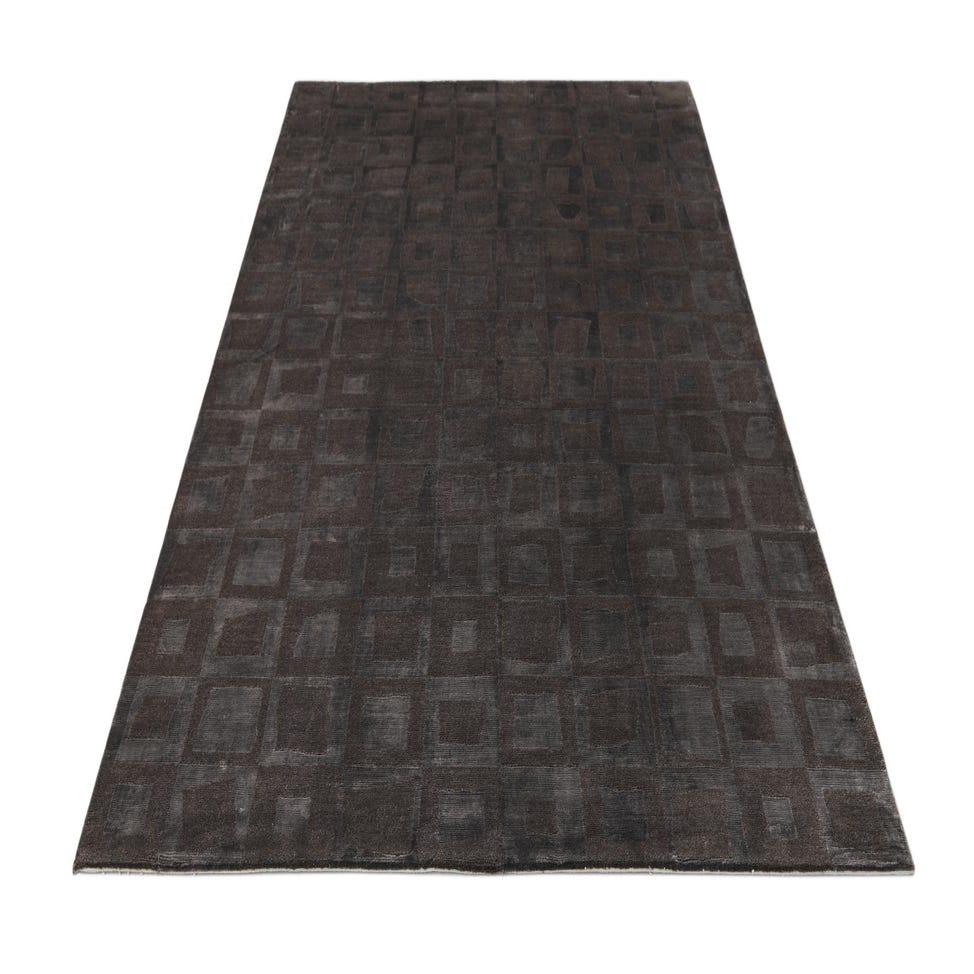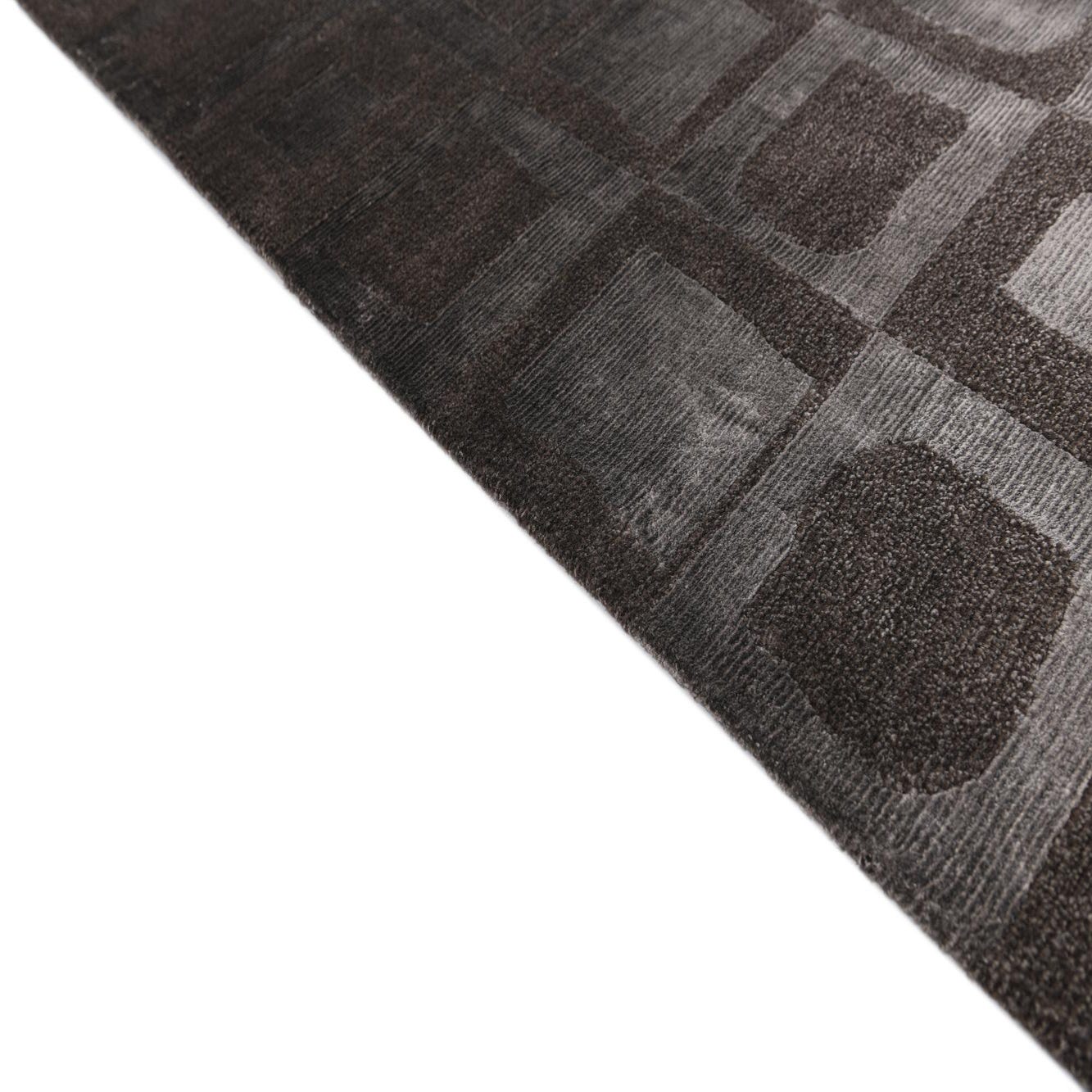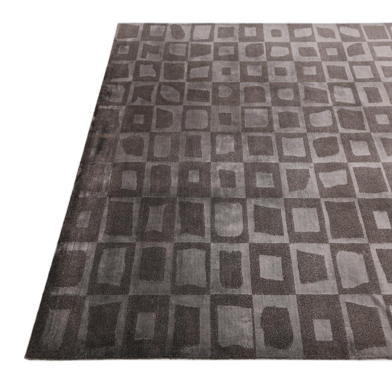 A 5x8 rectangular Darya Collection rug featuring a modern geometric pattern of varying brown and tan squares.