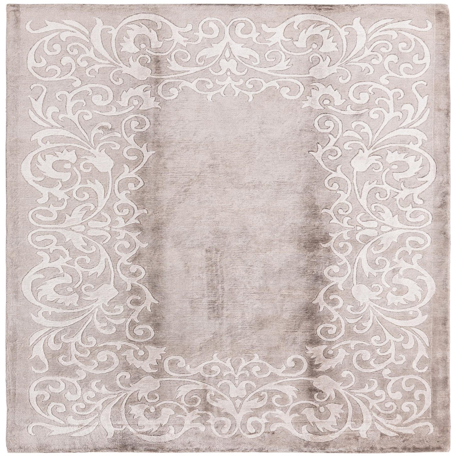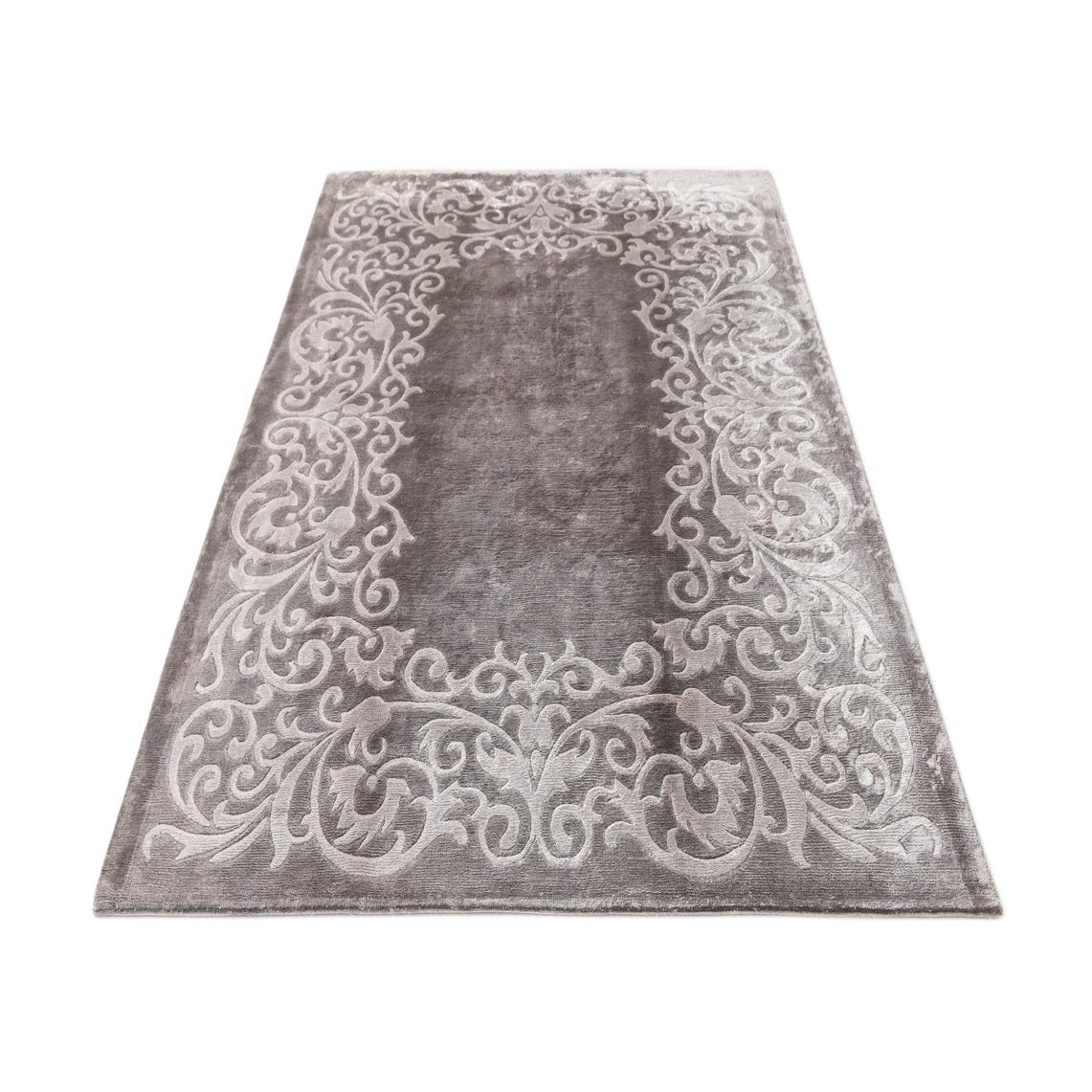 A 5x8 rectangular Darya rug in shades of brown and tan, featuring an elegant modern scrollwork border.